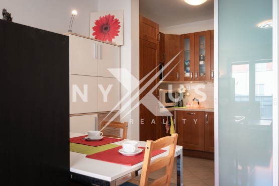 Interiér tohoto úžasného bytu nabízí obývací část s plně vybaveným kuchyňským koutem 26, 7 m2 (vestavná lednice s mrazákem, myčka, horkovzdušná trouba, varná deska) a vstupem na balkón s výhledem do klidného vnitrobloku, ložnici 12, 4 m2, pokoj se vstupem na terasu 17 m2, prostornou chodbu s vestavnými skříněmi 13, 4 m2, samostatnou toaletu 2 m2, koupelnu s rohovou vanou, sociální zařízení WC a místem pro umístění pračky 5, 7 m2 a balkón 8, 3 m2. K bytu náleží samostatná, velká, uzamykatelná garáž.