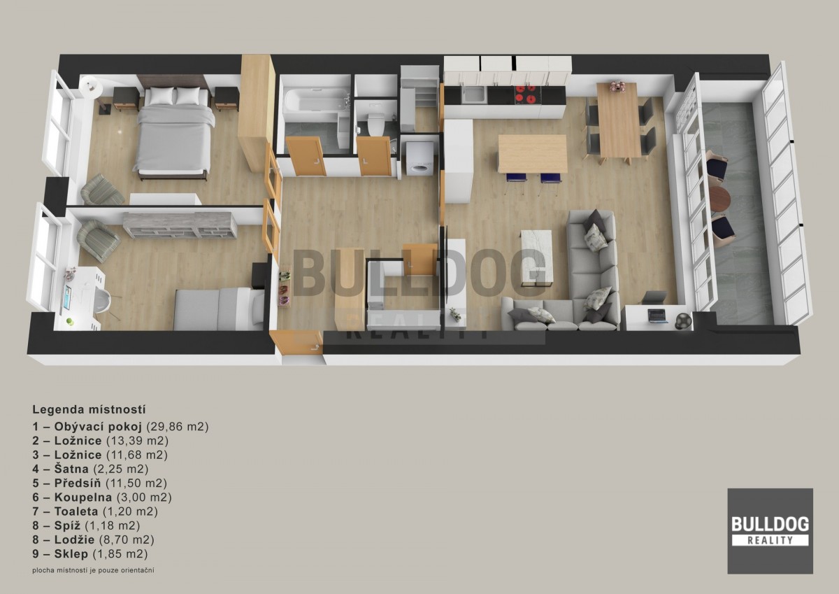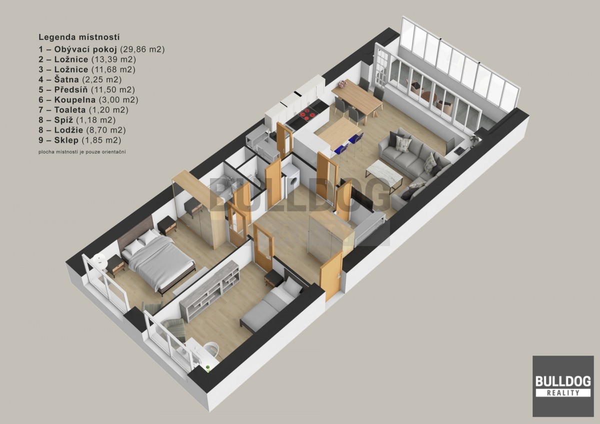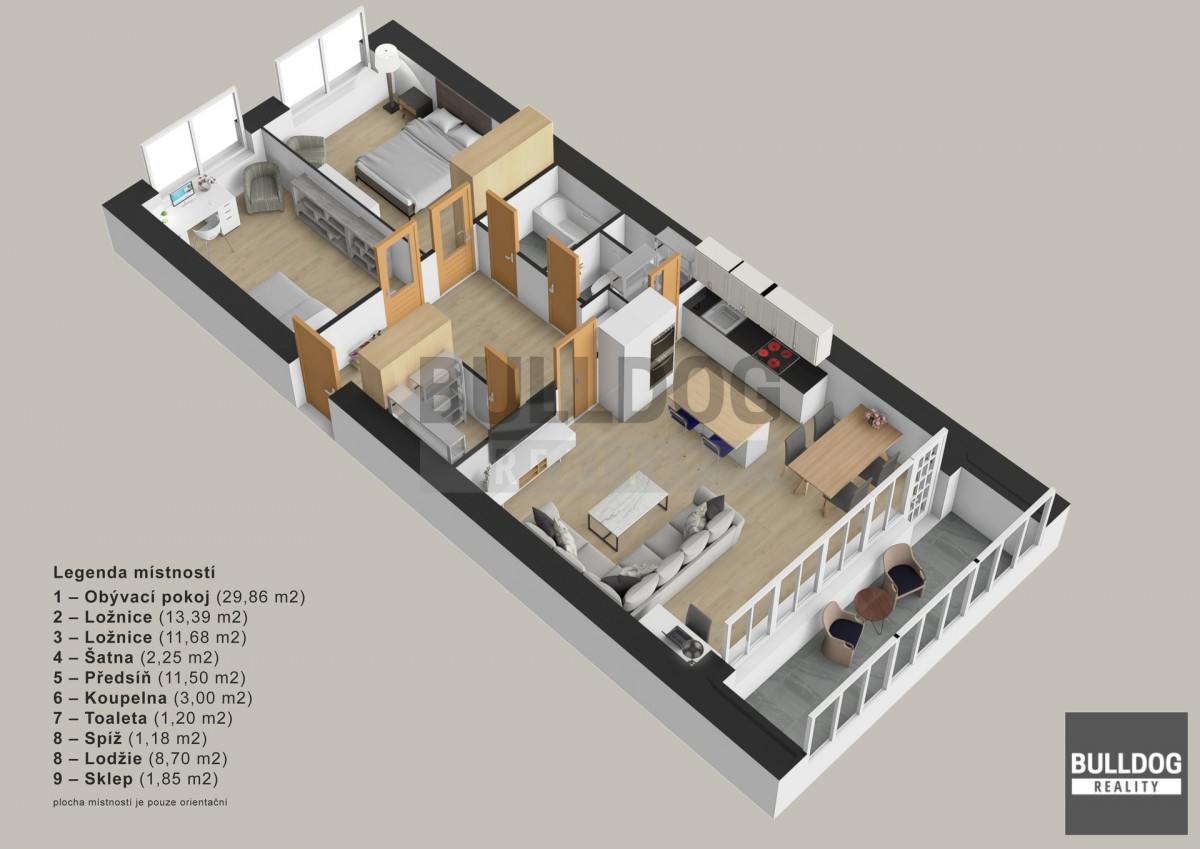 Hledáte - li bydlení v klidné a příjemné lokalitě s veškerou občanskou vybaveností a přírodou na dosah ruky, nabídka bytu u Stodůleckého rybníku Vás jistě zaujme. Byt o dispozici 3+kk... a podlahové ploše 77 m2 disponuje velkou lodžií (+9 m2) s výhledem do Centrálního parku a je velice prakticky dispozičně řešen. Pokoje jsou neprůchozí a v bytě je dostatek úložného prostoru - šatna, vestavěná skříň ve vstupní hale a v ložnici, spíž v kuchyni a zděný sklep (+2m2) s plechovými bezpečnostními dveřmi zn. ADLO nacházející se v suterénu domu. Dům je ve skvělém stavu, prošel celkovou rekonstrukcí v roce 2021 (zateplení minerální vatou, nová střecha, rozšíření lodžií, rozvody elektřiny, plastová okna, podlahové krytiny a vstup do domu). Samotný byt je taktéž ve skvělém stavu po rekonstrukci - plovoucí podlaha (všude stejná), interiérové dveře se zárubněmi, bezpečnostní vstupní dveře zn. ADLO, v pokoji a ložnici předokenní elektronicky ovládané rolety, kuchyň s vestavěnými spotřebiči (trouba, lednice, mikrovlnná trouba, sklokeramická deska, myčka, odsavač par), zasklená lodžie. V domě je k dispozici společná kolárna a střešní terasa. Parkování je přímo u domu bezproblémové. Hodnota uvedená v PENB odpovídá stavu před zateplením - nový PENB se zpracovává. Před domem je Centrální park, který navazuje na Prokopské a Dalejské údolí a Stodůlecký rybník ideální k procházkách i sportovním aktivitám, v blízkosti je například minigolf, kuželkárna, posilovna, oblíbené cyklistické a turistické trasy. V pěší vzdálenosti se nachází veškerá občanská vybavenost - několik MŠ, ZŠ, obchody, supermarket Tesco a Albert, OD Luka, pošta, lékárna, dětská hřiště, wellness centrum a další. Jen 600 m od domu je stanice metra linky B Luka, která Vás do centra Prahy doveze za cca 10 minut, 250 m od domu je autobusová zastávka s linkami 137, 174, 266, 902. Pokud Vás byt zaujal a máte zájem o více informací či termín osobní prohlídky, volejte makléře.