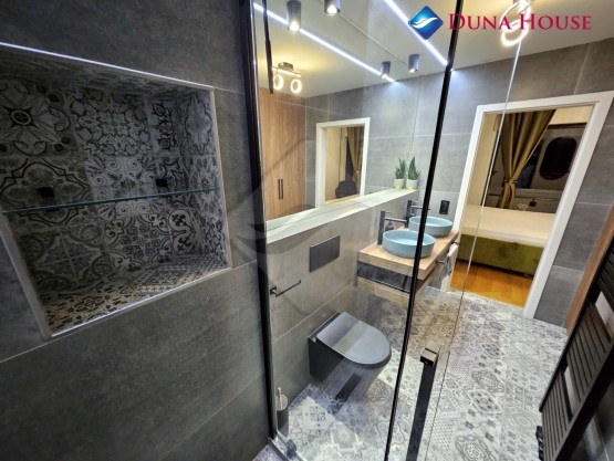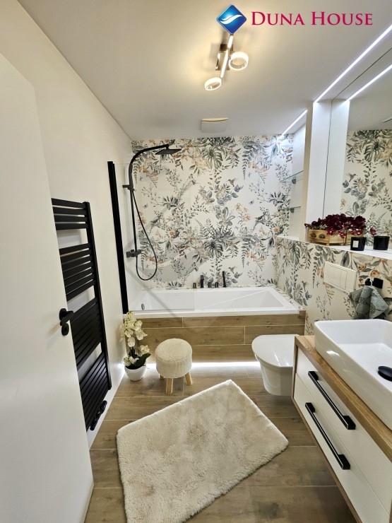 Byt je nadstandardně rekonstruován. Je zde moderní kuchyňská linka s vestavnými spotřebiči, klimatizace, dřevěné podlahy, luxusní koupelny apod.