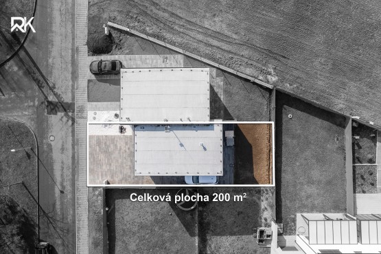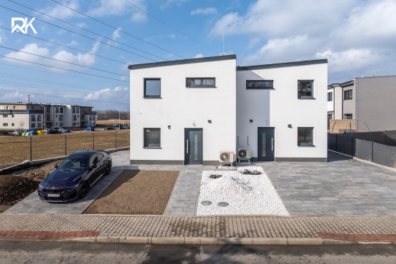 K domu náleží dvě parkovací místa přímo před vchodem a hotová zahrada, která poskytuje příjemné soukromí i prostor pro relaxaci. V exteriéru byla použita velkoformátová venkovní dlažba, která podtrhuje moderní a luxusní vzhled nemovitosti. Praktickým bonusem je venkovní nemrznoucí kohout na vodu, který usnadní údržbu zahrady i v chladnějším období.