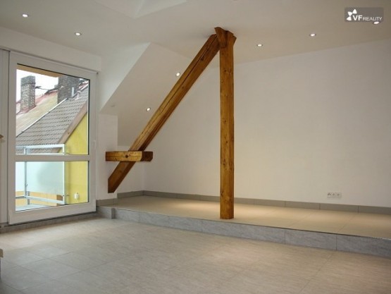 Prodej hezkého, nadstandardně provedeného mezonetového bytu, který byl zkolaudován v roce 2013, jehož dispozice je 3+kk a celková velikost 103 m2, včetně terasy or...ientované do vnitrobloku o velikosti 9 m2. Byt se nachází v 5. a 6. NP (šesté nadzemní patro) činžovního domu na ulici Jana Palacha. Ve spodní části bytu se nachází koupelna s vanou i sprchovým koutem spojená s toaletou, kuchyňský kout s barovým pultem a obývacím pokojem o celkové velikosti 36 m2. V obývacím pokoji je francouzské okno vedoucí na prostornou terasu. Na podlaze je položena dlažba, v celé místnosti je podlahové topení. Do patra vede dřevěné schodiště, kde je vpravo ložnice o velikosti 11 m2 a vlevo pokoj o velikosti 10, 5 m2, který je rozdělen, v jeho zadní části je prostor pro šatnu. Vytápění zajišťuje kombinovaný kotel, v celém bytě jsou sádrokartonové podhledy s bodovkami, kuchyňská linka značky Hanák s vestavěnými spotřebiči. Doporučuji prohlídku