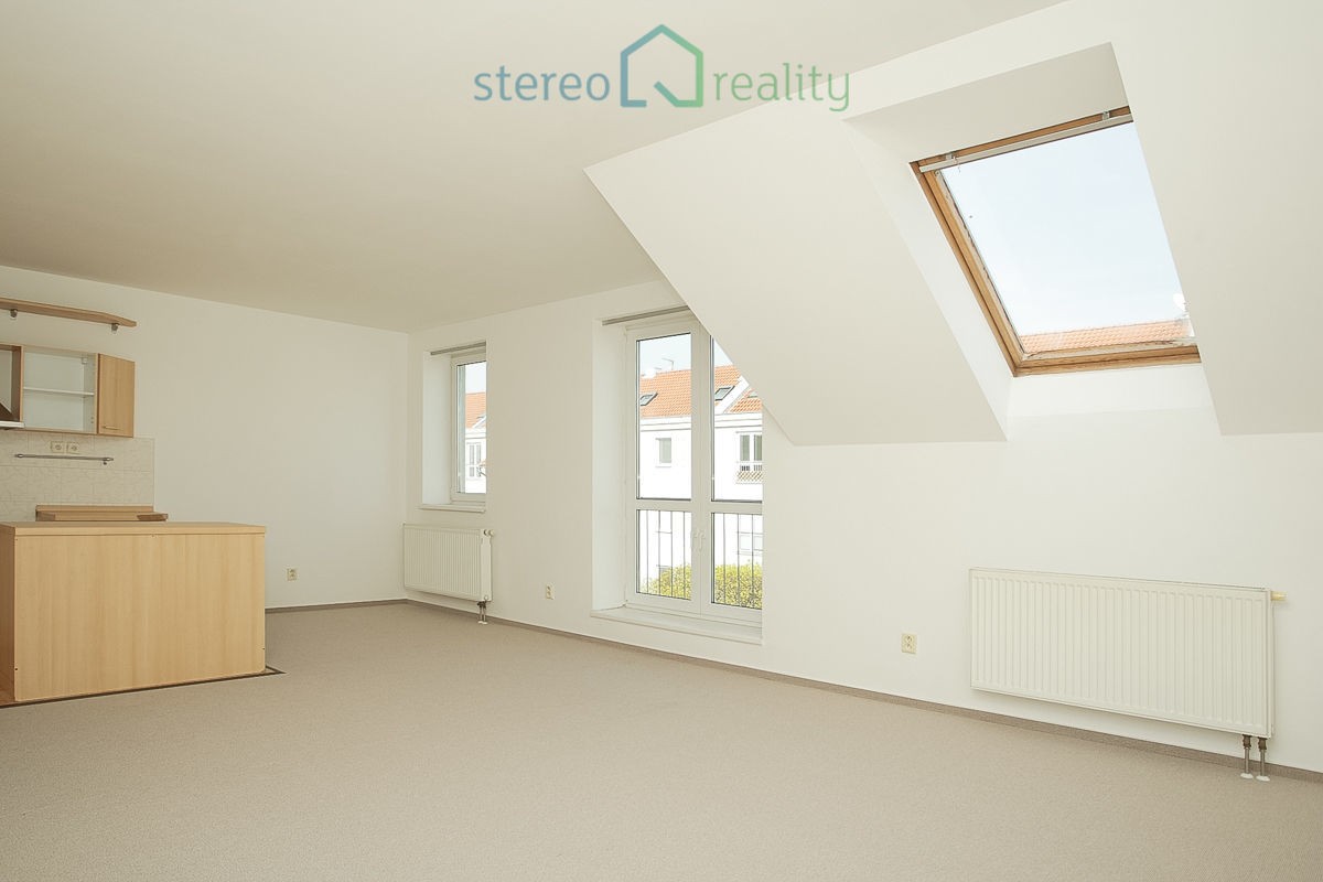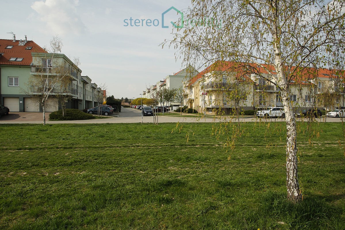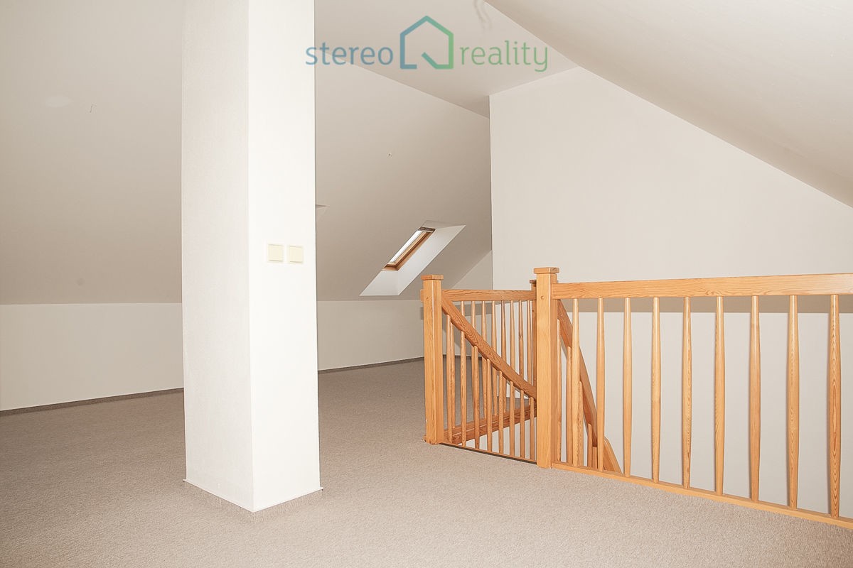 V mezonetovém bytu s dispozičním řešením 3+kk naleznete v prvním podlaží vstupní halu, ze které je vstup do velké koupelny s vanou a samostatné toalety. Ve stejném podlaží směrem na východ je prostorný obývací pokoj s kuchyňským koutem, který je standartně vybaven, dále na západ orientovaná je ložnice s balkonem a výhledem do zahrad domu. V hale je schodiště vedoucí do druhého podlaží, kde je velký pokoj, který je možno rozdělit na dva menší pokoje. K bytu patří sklep v přízemí domu o rozloze 4 m2.
