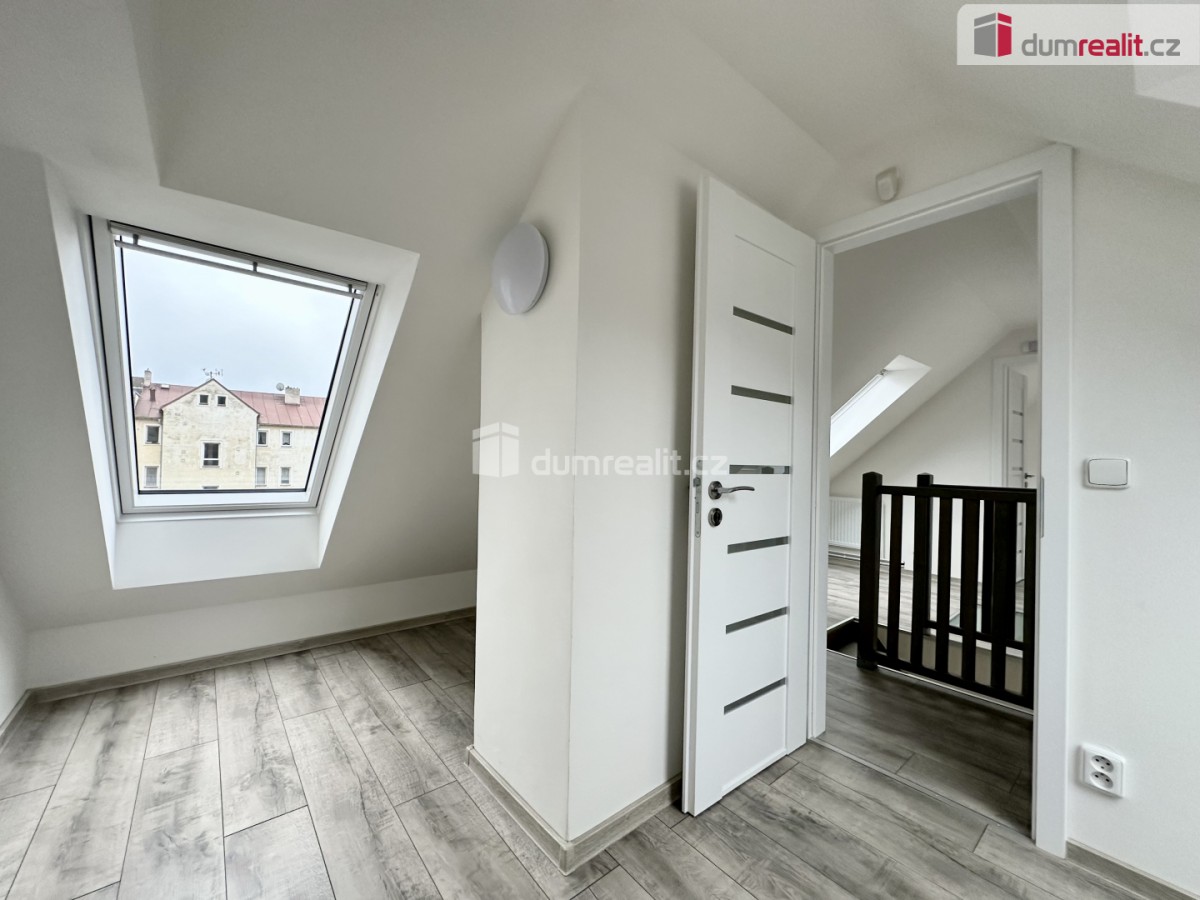 Dumrealit. cz Vám nabízí prodej mezonetové bytové jednotky o velikosti 4+1 v nádherné části Karlových Varů na Vyhlídce, v ul. Kolmá s balkónem a výhledem na Dianu s orientací na jižní... stranu s výměrou 119m². Byt. jednotka se nachází ve 4. patře bytového domu a je po právě dokončené celkové rekonstrukci. Podlahová krytina v celém bytě je lamino v kombinaci s dlažbou. Plastová okna a v patře plastová střešní okna Velux. Nové rozvody elektřiny. V kuchyni nově osazená kuchyňská linka včetně plynové varné desky IKEA SKALAN, elektrické trouby IKEA LAGAN, digestoře IKEA UTDRAG NN a vestavěná myčky nádobí IKEA OSTVEDA. Koupelna se skleněným sprchovým koutem a vanou. Samostatné sociální zařízení WC vedle koupelny. Obývací místnost je o velikosti 27, 6 m² se třemi okny. Ložnice / pracovna o velikosti 11, 5 m² je s prostorným balkónem a výhledem do okolí. V patře se nachází dvě místnosti / komory, každá se dvěma střešními okny a schodiště ( také se dvěma střešními okny ) s prosklenou pochozí částí nad spodní chodbou. Vytápění a ohřev vody plynovým kondenzačním kotlem Gepard Condens 18/25 MKV - A . Všude jsou nová otopná tělesa. V bytě je dále zabezpečovací systém (pohybová čidla + dveřní kontakt na vstupních dveřích). Internet přiveden do bytu optickým kabelem CETIN. Vše velice vkusně zrekonstruováno a připraveno k okamžitému nastěhování. Ev. číslo: 653224. Energetický štítek: E