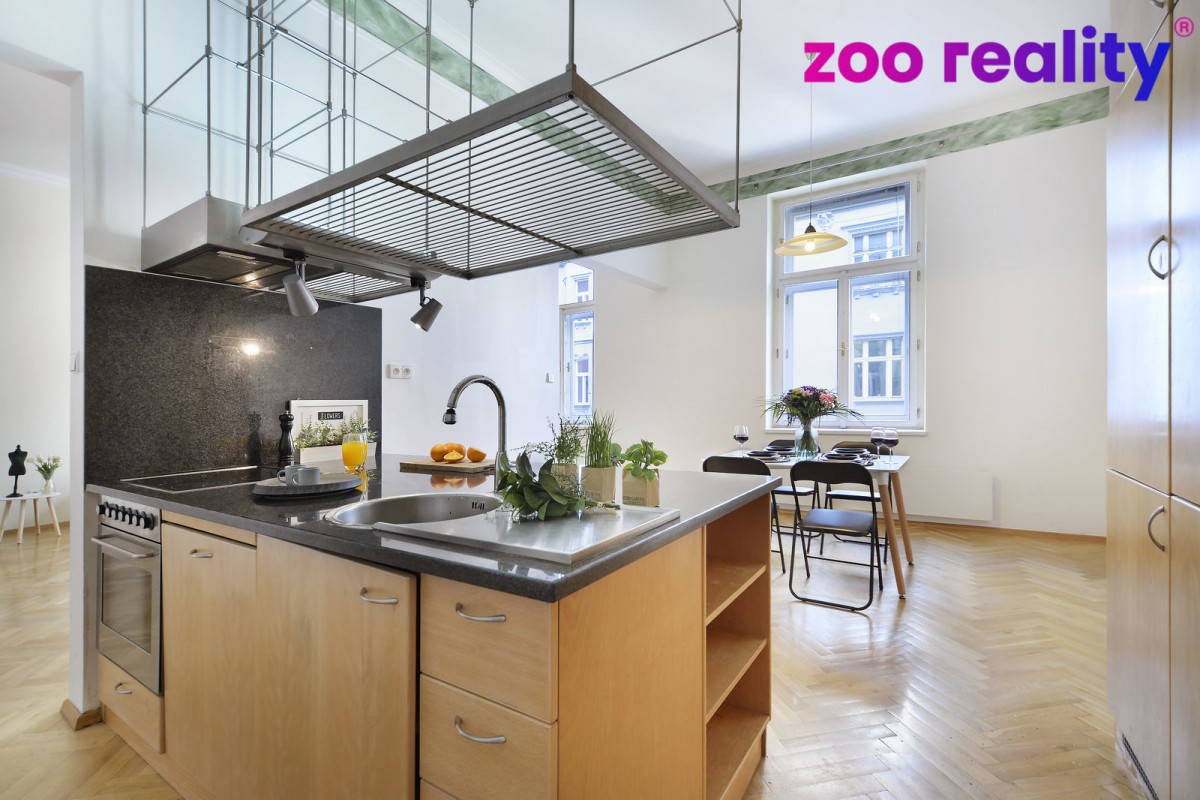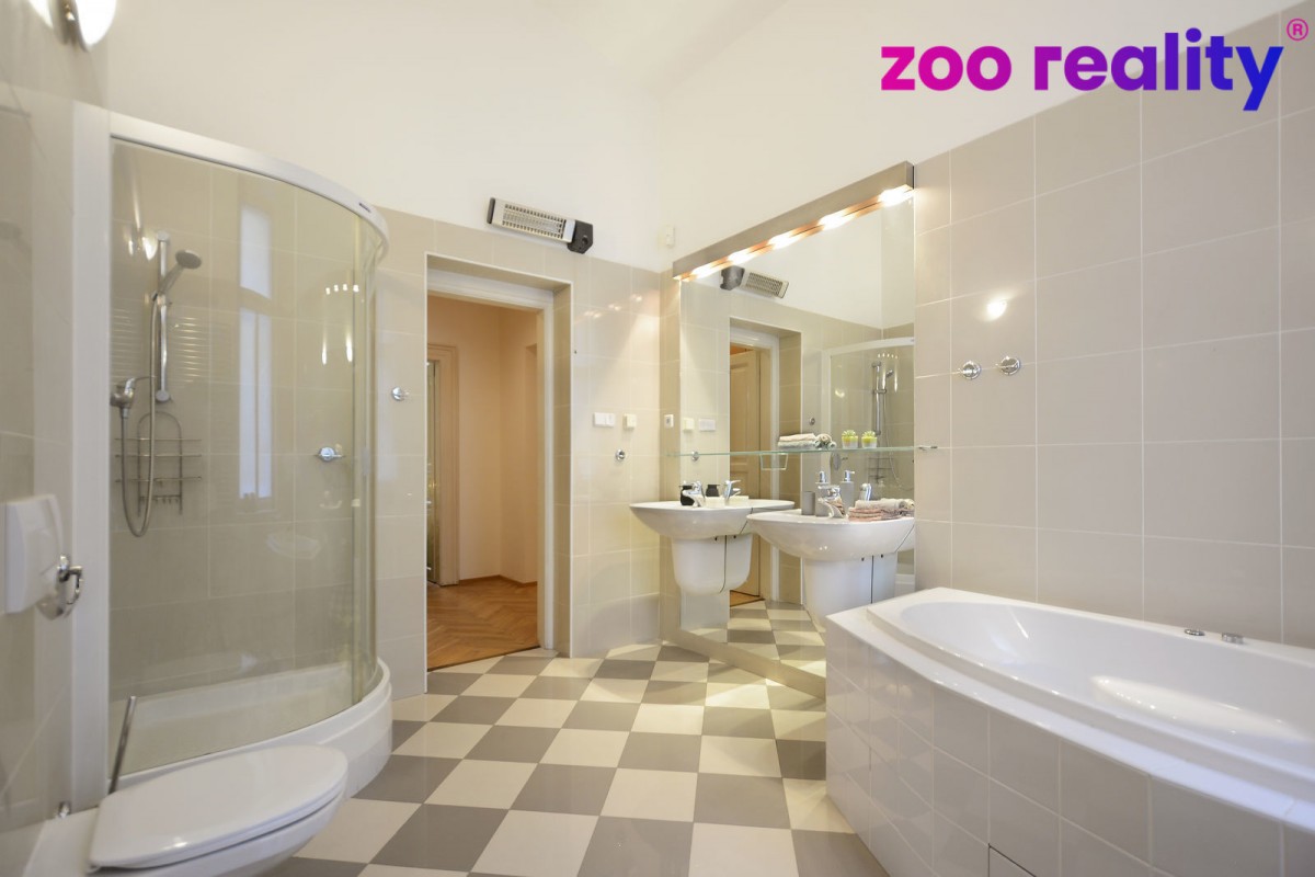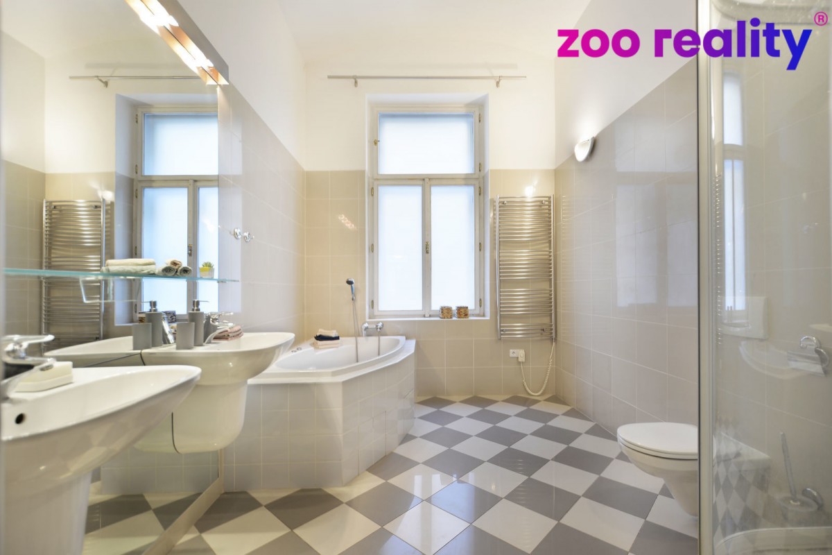Prodej nadstandardního bytu 4+1 o velikosti 155m2 na Praha 1 ve Vojtěšské ulici. Nemovitost se nachází v centru Prahy, konkrétně na Novém městě v bezprostřední blízkosti ...Vltavy a galerie Mánes. Václavské náměstí či Národní divadlo se nachází v dochozí vzdálenosti. Samotný byt se nachází v 3. nadzemním podlaží (2. patro) zrekonstruovaného secesního domu, jenž byl postaven na začátku 20. století. Po otevření vstupních dveří vstoupíte do centrální chodby, jenž prochází celým bytem, z které se vstupuje do jednotlivých pokojů a jejíž součástí je samostatné sociální zařízení WC s umyvadlem. Na první pohled vás zaujme velkoryse řešený obývací pokoj, který je propojen do prostoru jídelny a kuchyně, kuchyňská linka je tvořena monoostrůvkem. V bytě se pak nacházejí ještě tři další ložnice, kde jedna má vlastní samostatnou koupelnu se sprchovým koutem a vstupem na menší balkon směrem do vnitrobloku. Ve všech obytných místnostech jsou jako podlahové krytiny dřevěné parketová podlaha. Hlavní koupelna disponuje jak vanou tak i sprchovým koutem, kde podlahové vytápění je samozřejmostí.
