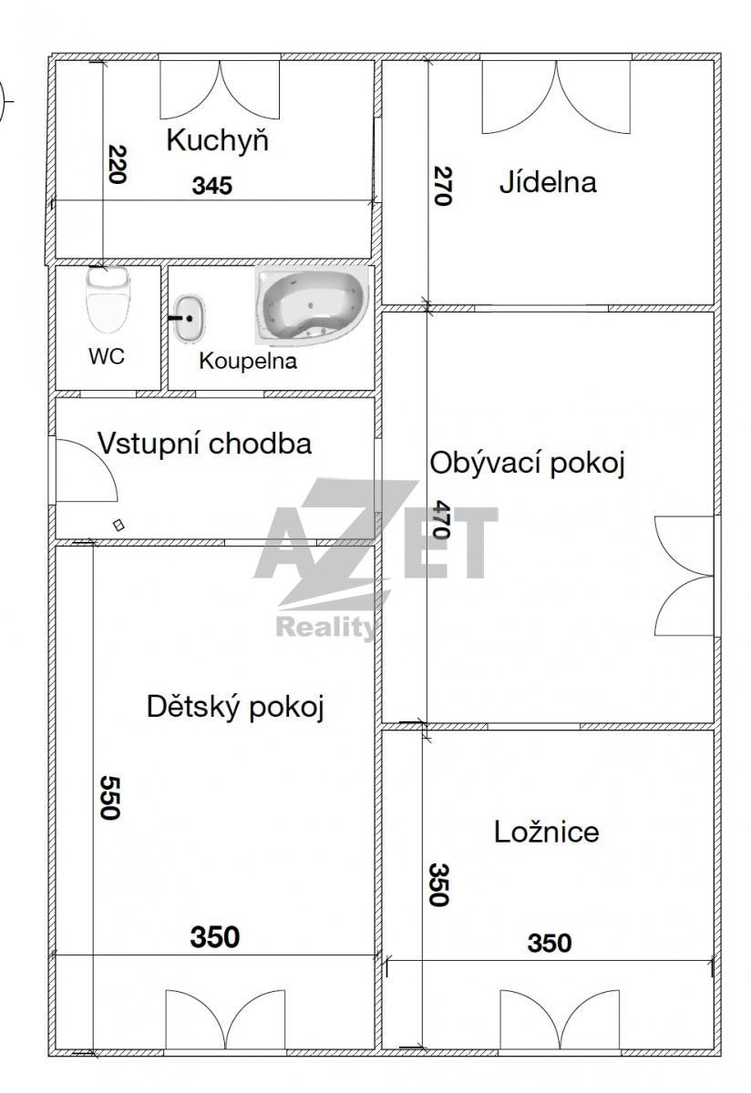 Byt o podlahové ploše 73 m and sup2; se nachází ve 2. nadzemním podlaží ze 4.