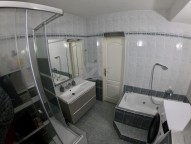 V bytě je rozšířená zděná koupelna s vanou, tak... i se samostatným sprchovým koutem + sociální zařízení WC. Moderní kuchyň se spotřebiči(samostatná plynová varná deska, vestavěná mikrovlná trouba a elektrická trouba na pečení, myčka), na chodbě vestavěná skříň, nové jističe a elektroinstalace v bytě je rozvedena částečně v mědi.
