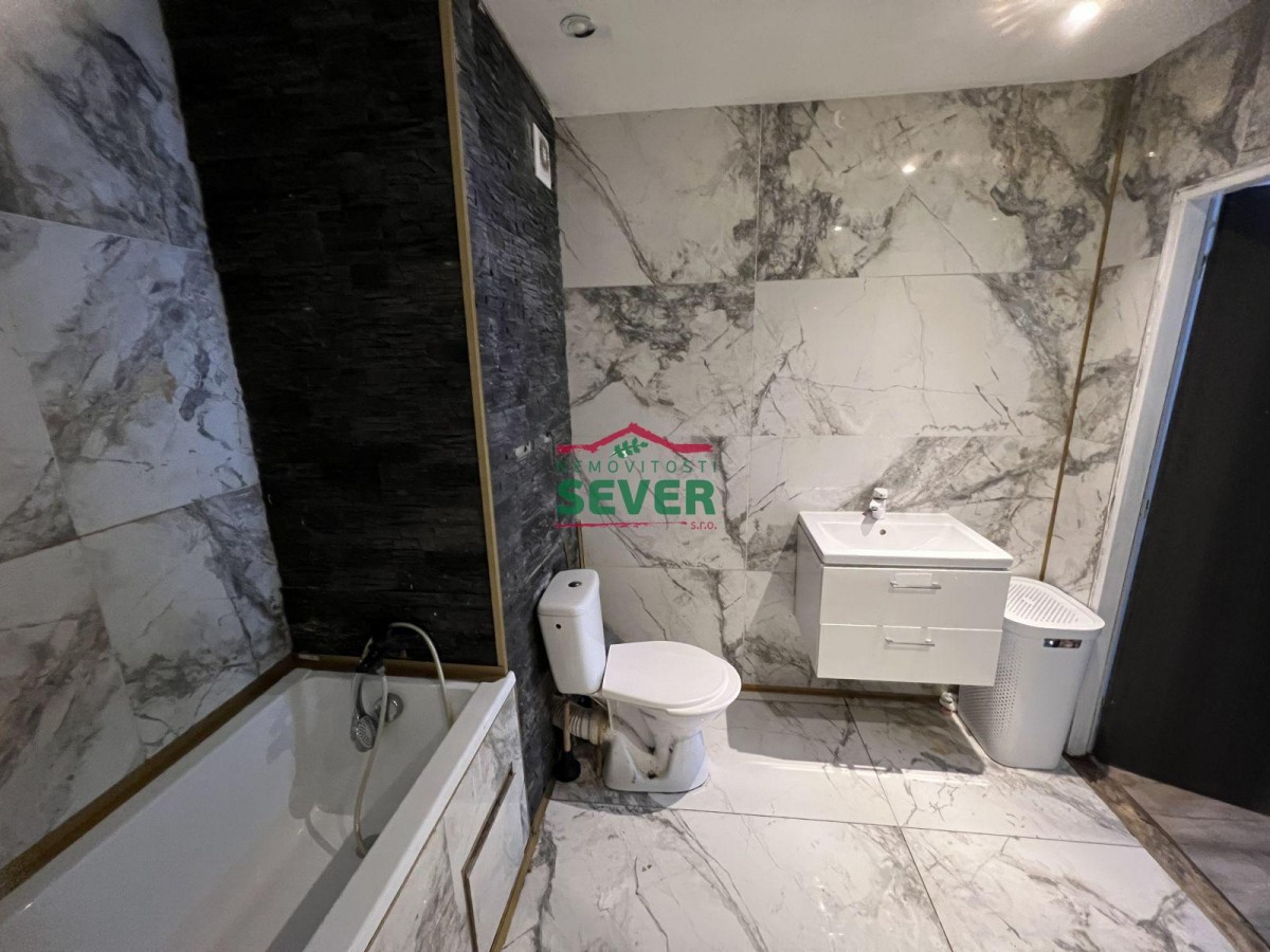 Nemovitosti SEVER vám zprostředkují prodej družstevního bytu 4+1, Janov u Litvínova, okr. Most, ul. Luční. Byt. jednotka po rekonstrukci, o výměře 83 m2, se nachází ...ve druhém nadzemním podlaží panelového domu včetně výtahu a jeho součástí je prosklená lodžie, komora a prostorná šatna v bytě. Cena bytu je včetně veškerého nábytku, zařízení, elektroniky a sportovního náčiní. Koupelna s sociální zařízení WC jsou společné ve zděném jádru. Je zde vana, sprchový kout a skříňka s umyvadlem. V kuchyni je rohová linka, elektrický sporák se sklokeramickou deskou, horkovzdušná trouba, lednice, jídelna. V bytě jsou plastová okna, snížené stropy, na zemi plovoucí podlahy, nové rozvody vody, elektřiny, interiérové dveře, obývací pokoj má stěny obloženy přírodním kamenem. Zůstávají skříně, postele, sedací souprava, televize. Dům po revitalizaci se nachází na okraji sídliště u lesa. Anuita na bytě je splacena, nejde jej převést do osobního vlastnictví. V případě zájmu zajistíme optimální financování našimi poradci.
