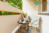 Z prostorné chodby se v bytě dostanete do dvou samostatných pokojů, kuchyně a obývacího pokoje s lodžií, z tohoto obývacího pokoje je vstup do 4. pokoje. U vchodu do bytu se nachází samostatné sociální zařízení WC a pěkná koupelna. K bytu náleží sklepní kóje. Dům i byt prošly rekonstrukcí.