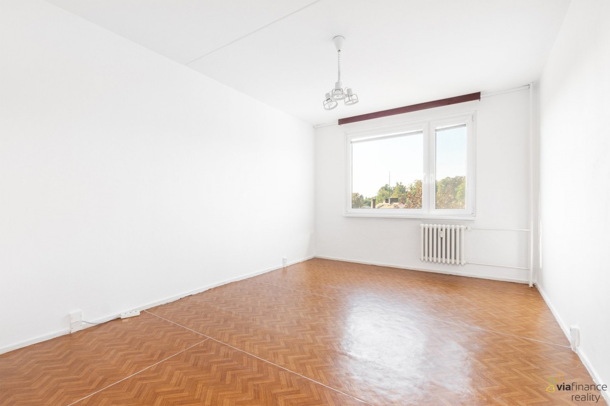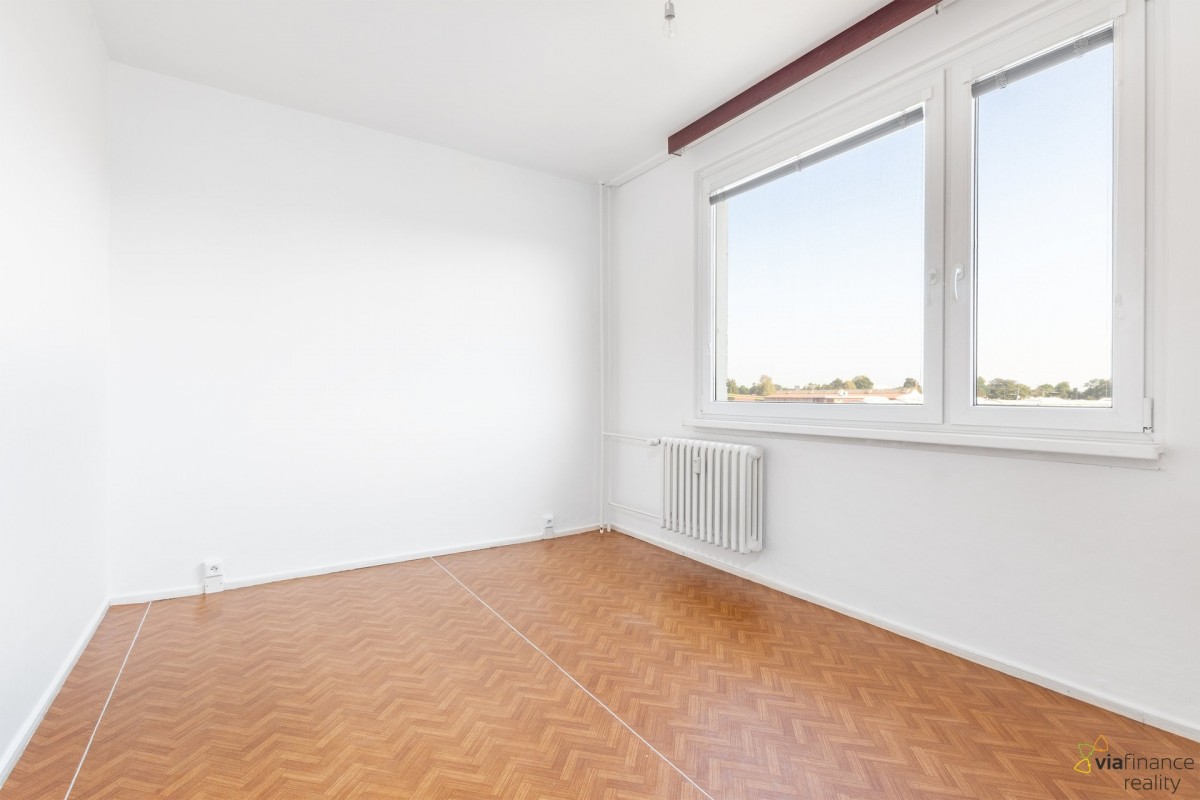 Byt má dispozici ... title="4 pokoje + 1 kuchyň">4+1 a celkovou výměru 86, 25 m2. Je tu kuchyň s jídelnou, obývací pokoj, 3 ložnice, koupelna, samostatné sociální zařízení WC, lodžie a komora. K bytu patří sklep o velikosti 4 m2 a nechybí ani společná sušárna a kolárna. Leží ve 5. patře panelového domu, ale žádných výšlapů se bát nemusíte – k bytu vás vyveze výtah.