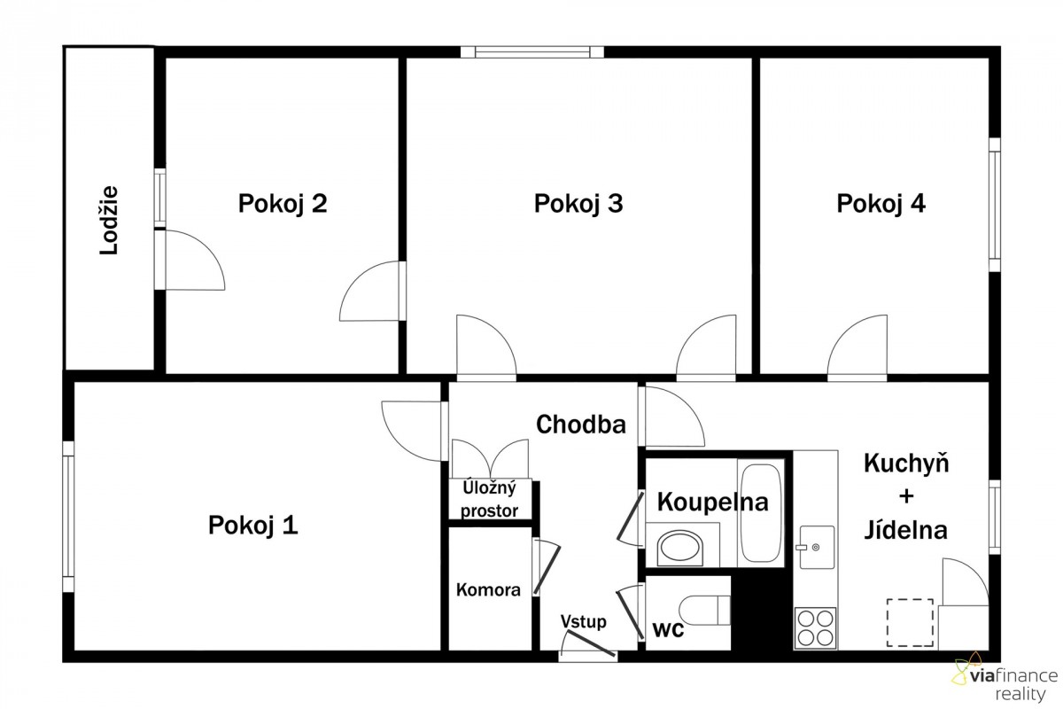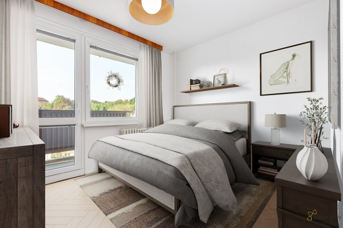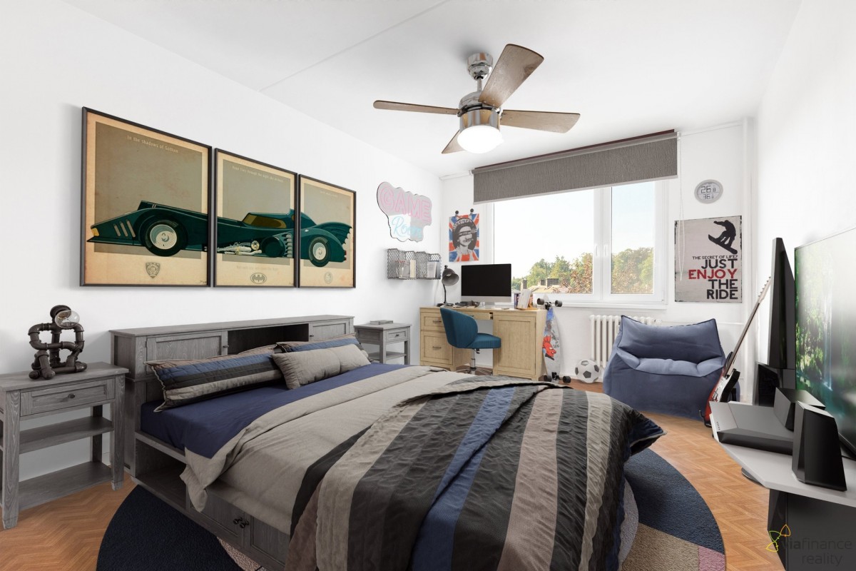 Všechny čtyři pokoje mají velká okna – na čtení knížek v obýváku i psaní úkolů v pokojíčku bude vždycky dost denního světla. Jedna z ložnic má přístup na lodžii s výhledem do okolí.
