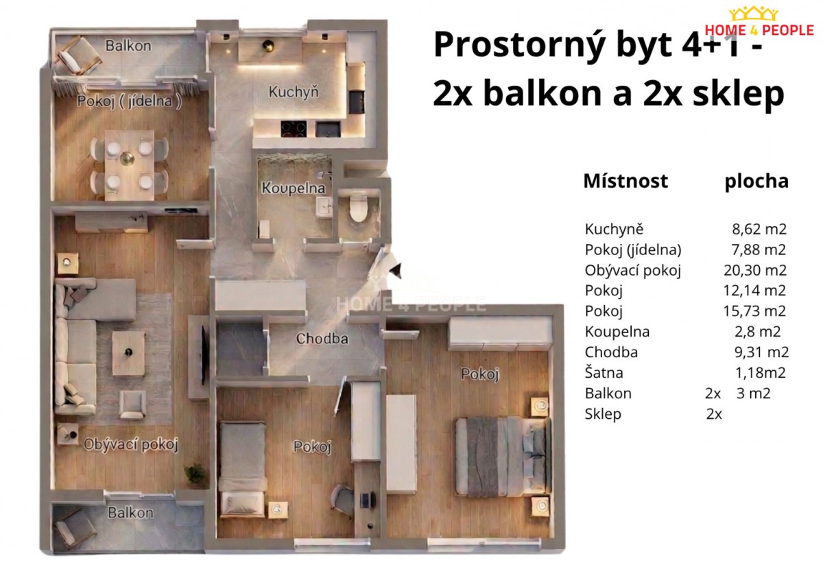 To, co tento byt odlišuje od ostatních, je jeho nadstandardní příslušenství. K dispozici máte hned dva balkony (2 krát 3 m²) , které nabízejí ideální prostor pro relaxaci nebo pěstování květin. Praktickou stránku bydlení doplňují také dva sklepy. Jeden se nachází přímo na patře bytu, což oceníte pro uložení věcí denní potřeby, a druhý klasický sklep najdete v přízemí domu.