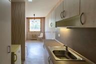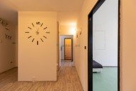 Byt disponuje prostornou chodbou, dvěma ložnicemi orientovanými na sever, obývacím pokojem orientovaným na jih, který je propojený s jídelnou a kuchyní. Dále byt disponuje ložnicí orientovanou taktéž jižně a druhým záchodem s umyvadlem. Jádro je po kompletní rekonstrukci (stará cca 15 let). Standardní sklep náležící k bytu je umístěn v suterénu budovy. Na chodbě před bytem je navíc k dispozici komora.