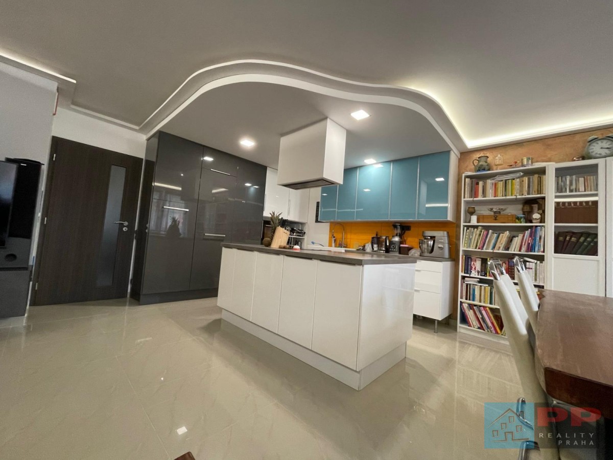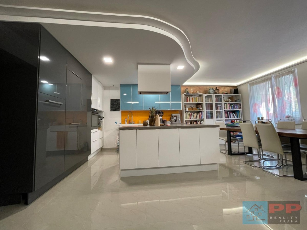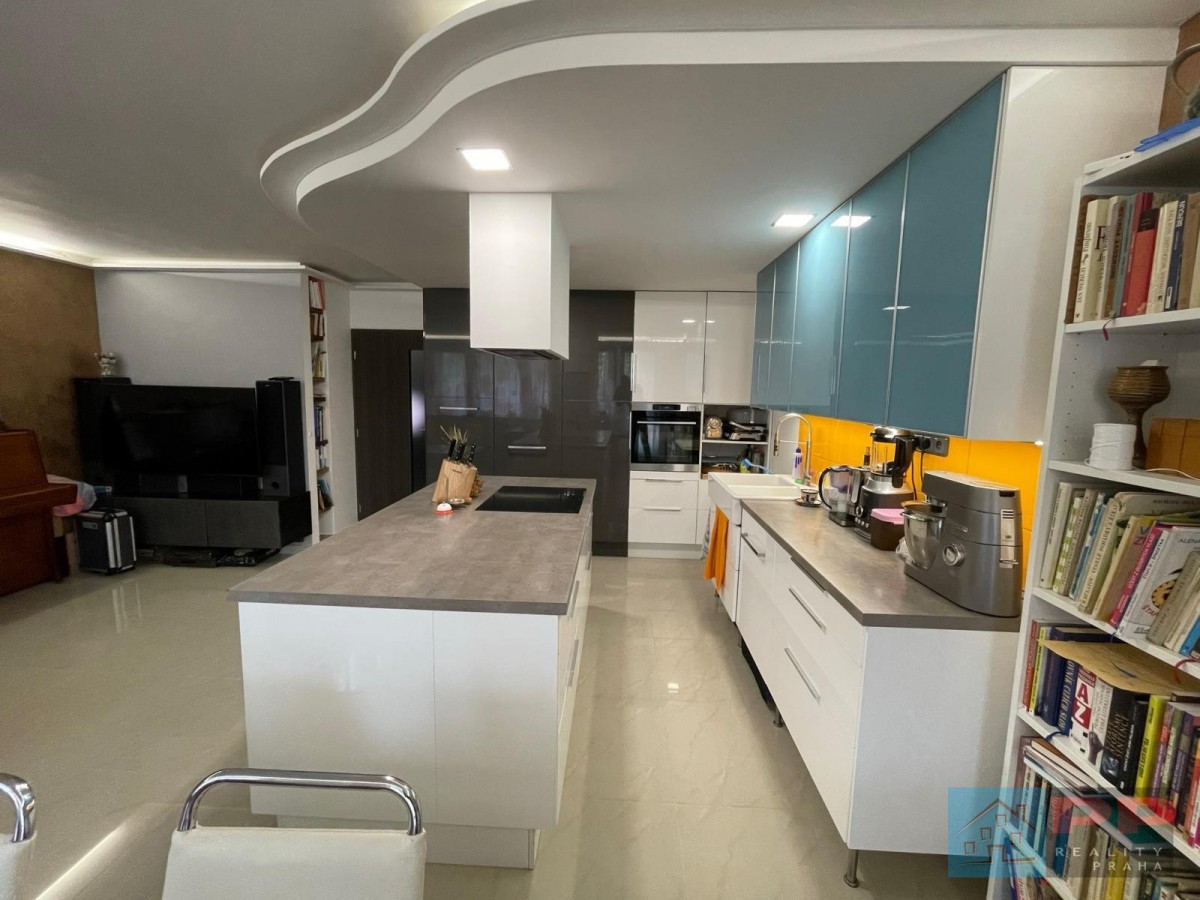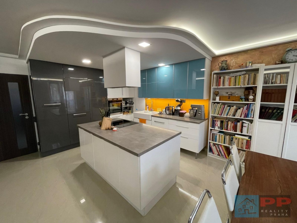 Plně vybavená, navržená s důrazem na funkčnost a estetiku. Nabízí nadstandardní řešení úložných prostor, velkou pracovní plochu a ostrůvek s další rozšířenou pracovní plochou, ideální pro přípravu pokrmů i společné vaření.