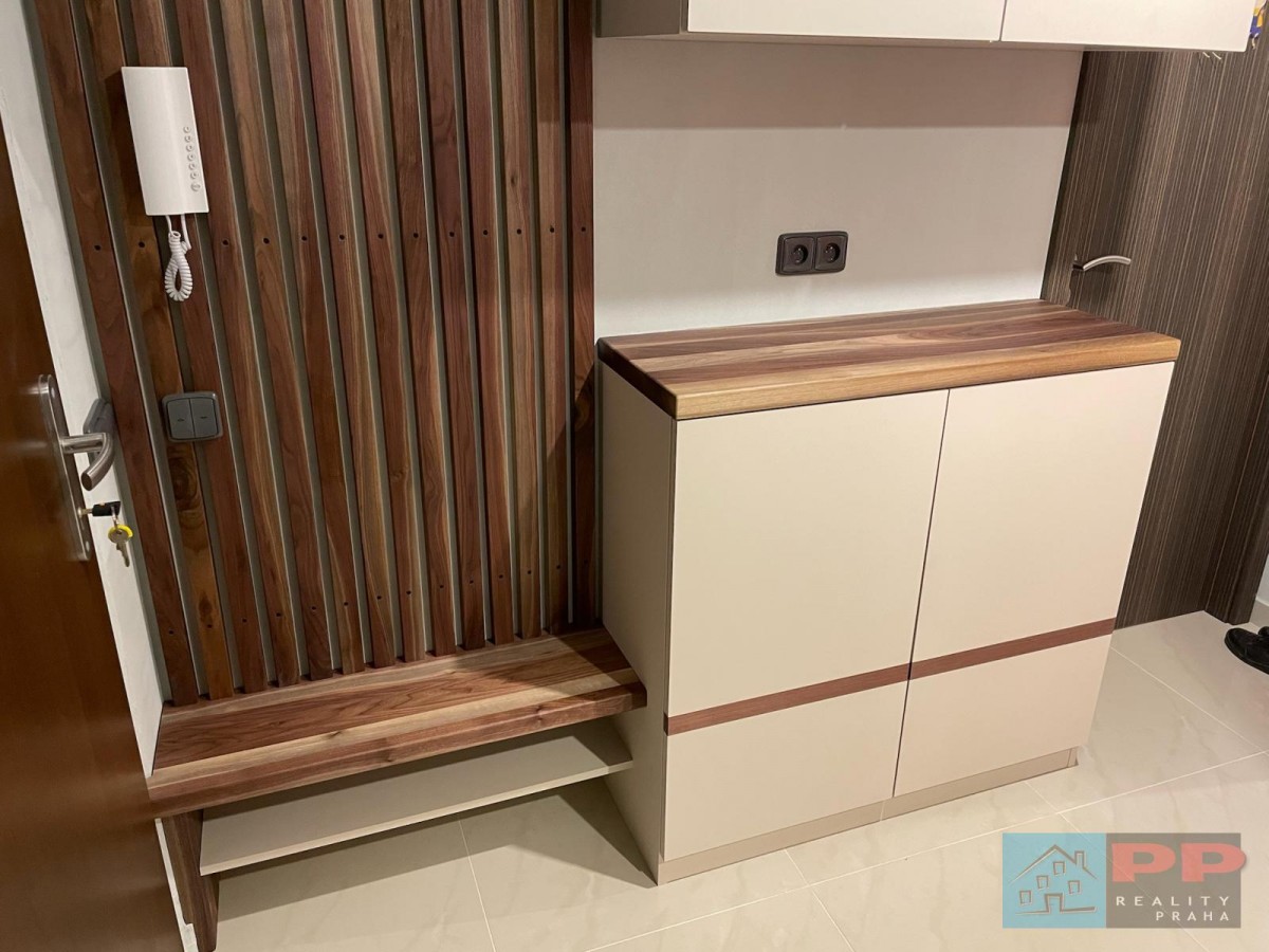 1. Luxusní vybavení a design na míru: Byt je vybaven na zakázku vyráběným nábytkem, který zajišťuje nejen estetický dojem, ale i maximální funkčnost. Nadstandardní prvky, jako jsou bezpečnostní dveře, předokenní exteriérové rolety a rohová vana, poskytují vysoký komfort bydlení.