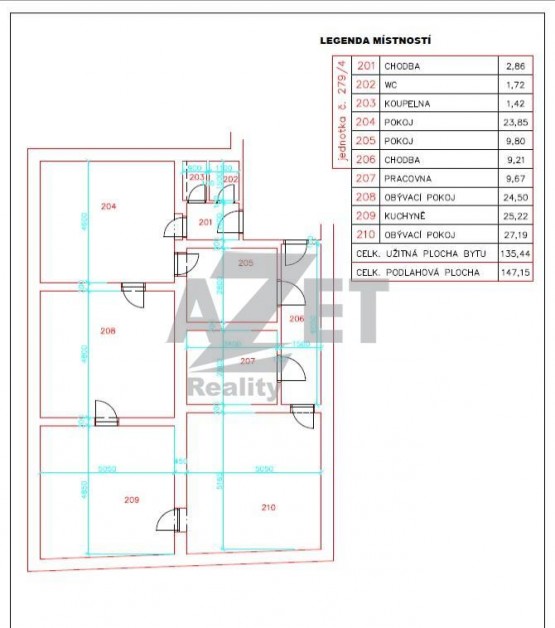 4+kk, 135 m2, cihlová, OV, 2. podlaží