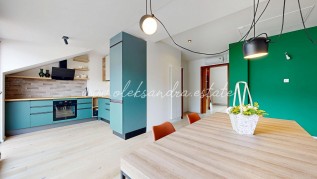 Byt právě prošel precizní a do detailu promyšlenou rekonstrukcí (2024) s důrazem na kvalitu,  styl a funkčnost.  Výsledkem je moderní,  světlý interiér s italským šarmem  na míru vyrobená kuchyně z Itálie,  obklady a dlažby Fondo Valle (120 krát 120 cm),  dubová podlaha I.  třídy od Labor Legno.  Každý pokoj je vybaven klimatizací,  bezpečnostním alarmem,  novými okny,  rozvody i kondenzačním plynovým kotlem Bosch.  Samozřejmostí jsou dvě elegantní koupelny se sprchovým koutem,  sociální zařízení WC a bidetem.  K dispozici je i pračka a sušička Bosch.