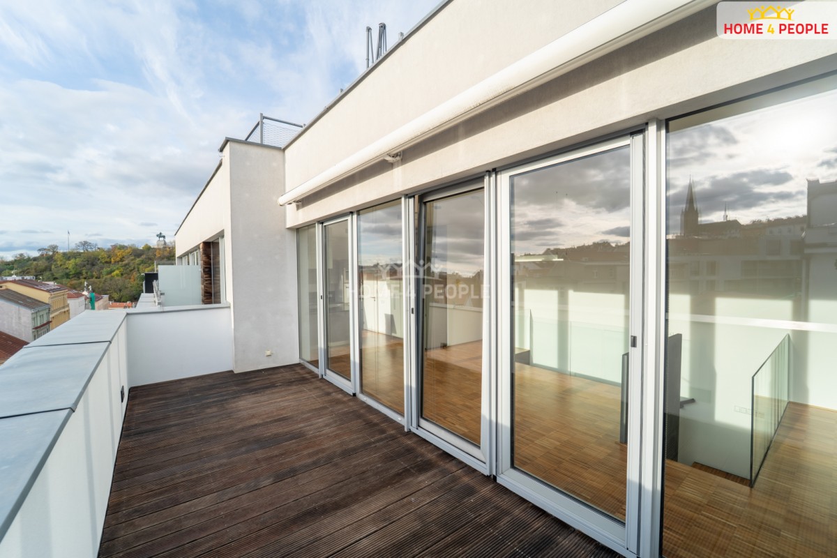 Prodej přímý majitel - Kupující neplatí provizi. Nabízíme k prodeji výjimečný mezonetový byt 4+kk o podlahové ploše 139 m², nacházející se v 6. a 7. nadzemním podlaží prest...ižní Rezidence Prokopova. K bytu náleží rozsáhlé venkovní plochy – terasy a balkony o celkové výměře 97 m², včetně exkluzivní střešní terasy 59 m² v 8. NP (osmé nadzemní patro) s dechberoucím panoramatickým výhledem na celou Prahu a Pražský hrad.