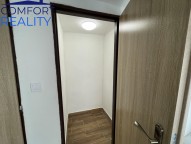 Interiér bytu je vybaven kuchyňskou linkou se zabudovanými spotřebiči. Podlahy tvoří koberce a dlažba.