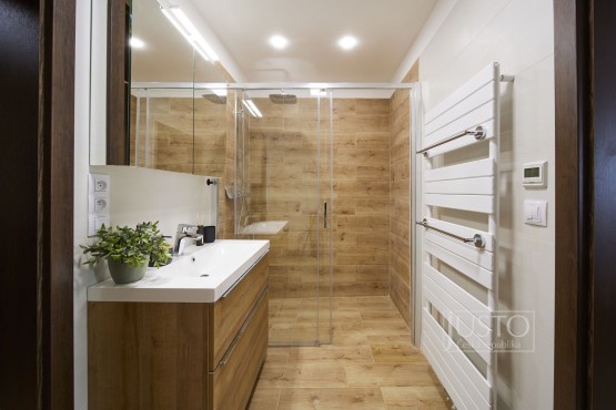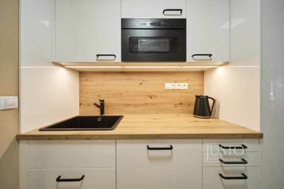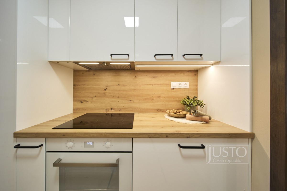 Veškeré vybavení bytu, které vidíte na fotografiích i ve videu je součástí prodeje. Velkou část vybavení zhotovil truhlář na míru. V bytě dosud nikdo nebydlel, tedy i koberce jsou, stejné jako celý byt, v novém, čistém a nepoužívaném stavu. O teplo se v bytě stará elektrický kotel, který zároveň ohřívá vodu v 120 litrovém zásobníku.