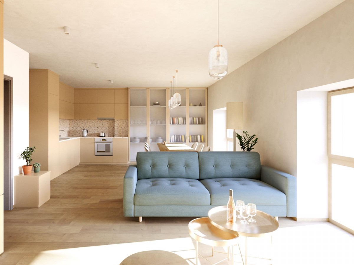 Byt dispozice 4+kk o užitné ploše 85 m2 (podlahová plocha 90 m2)