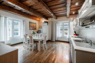 Celou dolní místnost zdobí stropní trámy a navozují velice příjemnou atmosféru Starého města, stejně jako obě podkrovní ložnice i koupelna se pyšní moc hezkými trámy, které jsou dochovány z roku 1789. Jedná se o velice zajímavou investiční příležitost díky své lokalitě anebo residenční bydlení v moc hezké staré Praze.