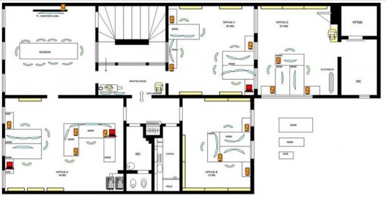 V současné době je byt využíván jako kanceláře. Byt se skládá z pěti místností, kuchyně a dvou toalet.