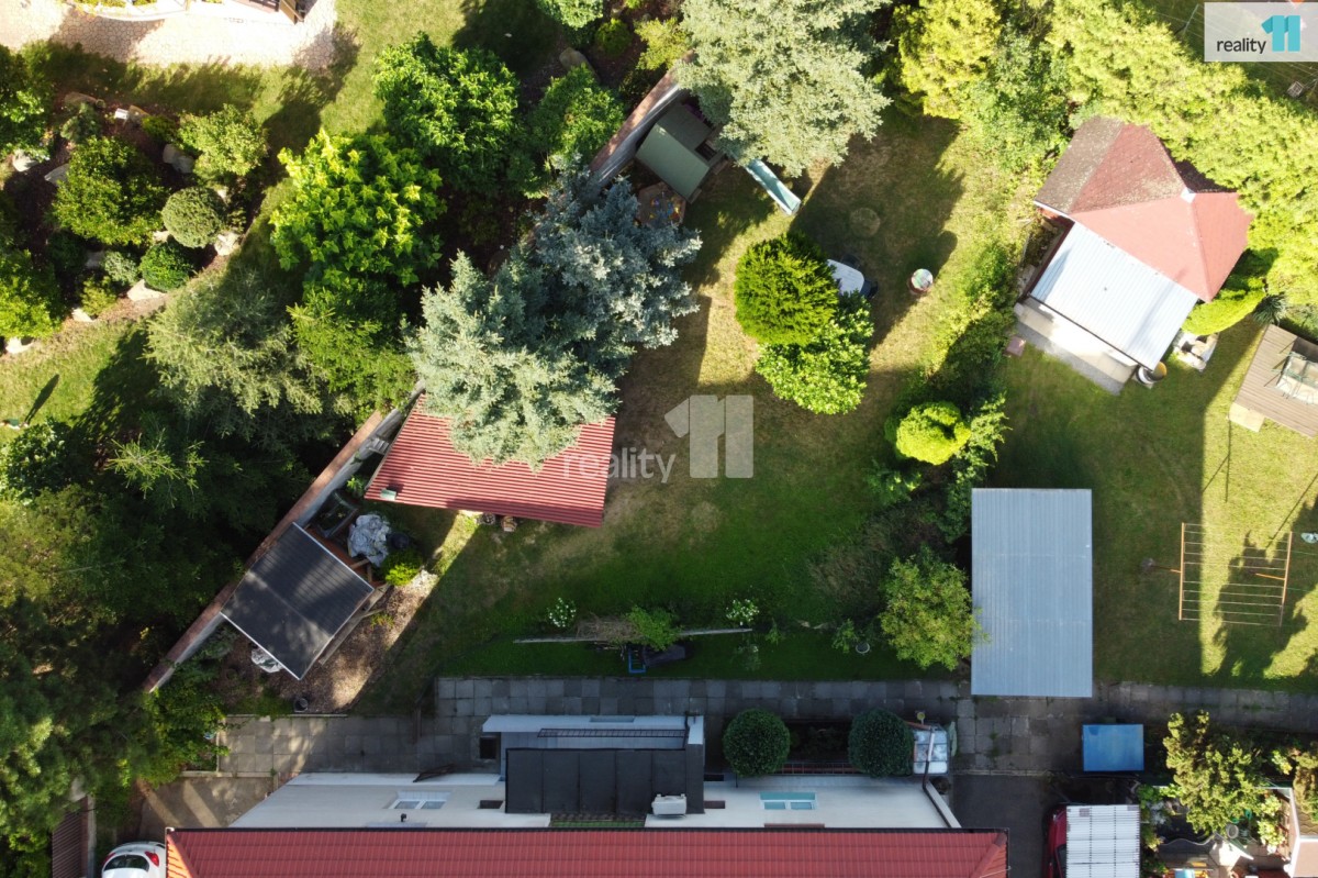 K bytu náleží část oplocené zahrady o rozloze cca 350m² kde se nachází dětský domeček, přístřešek pro uskladnění zahradních věcí.
