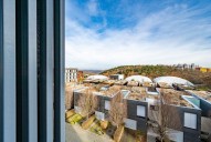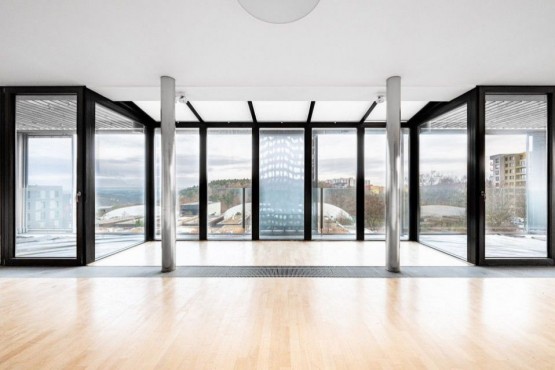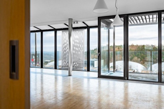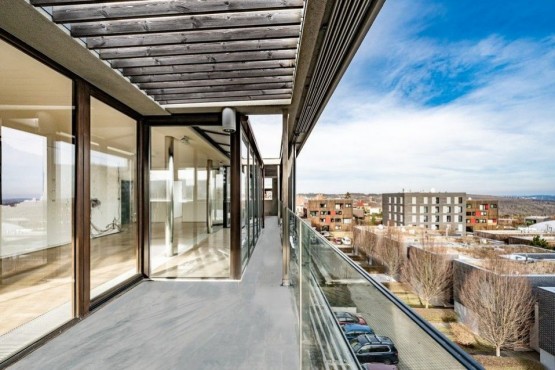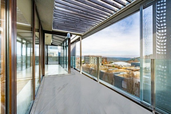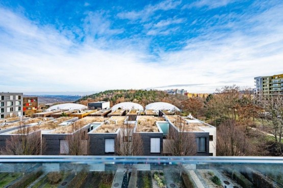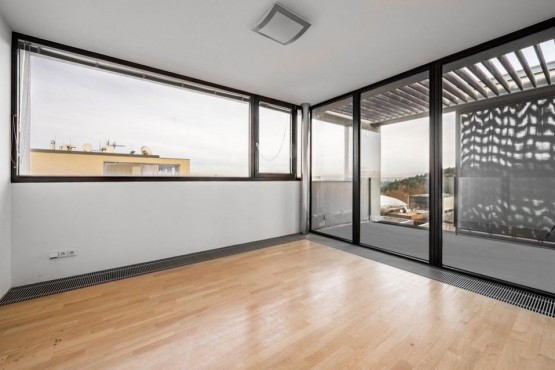 K bytu o podlahové ploše 188 m2 přísluší východně orientovaná terasa s velikostí 38 m2, s celoproskleným zábradlím. Umístění bytu po celé ploše čtvrtého, posledního patra domu tak zaručuje nejen soukromí, ale i ničím nerušené výhledy do daleka.