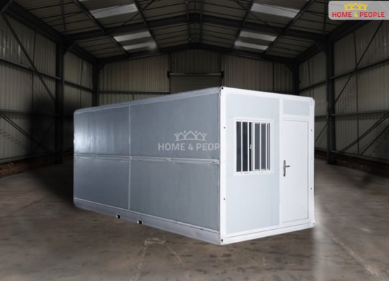 modulový typ, lze seskupovat, příp. dokoupit doplňkové vybavení. Hledáte nejlevnější skladový prostor, stavební buňku, dočasné bydlení či jiný prostor? Moderním řešením jsou revoluční modulární FLEXIBILNÍ SKLÁDACÍ KONTE...JNERY – cenově dostupné, ekologické a snadno přizpůsobitelné Vašim potřebám. Rozměry: 246 x 580 x 255 cm. Výbava: dveře, okna, izolace, podlaha, elektrické rozvody a světlo. Kontejnery jsou opláštěny sendvičovými panely z ocelových plechů a vyplněny minerální vatou o minimální tloušťce 50 mm. Vnitřní stěny jsou z PVC. Lze užívat jednotlivě nebo je sestavit vedle sebe. V případě potřeby sprchy a sociální zařízení WC lze toto vyřešit přidáním sanitárního samostatného kontejneru.