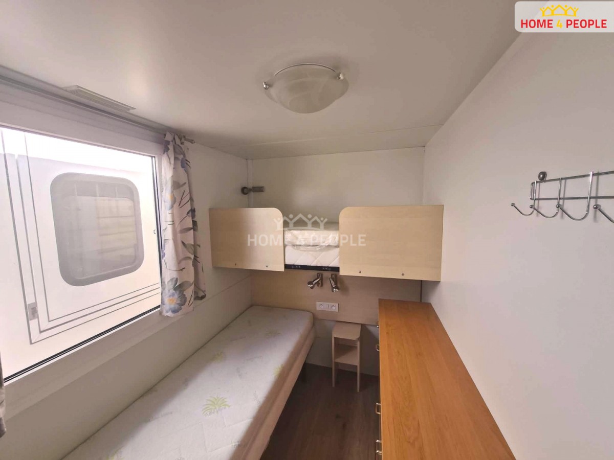 Díky velké terase získáte luxusní venkovní prostor, který u běžných mobilheimů často chybí. Dům je kompaktní, snadno se převáží a usazuje (kovová konstrukce, kola). Ev. číslo: 32149.
