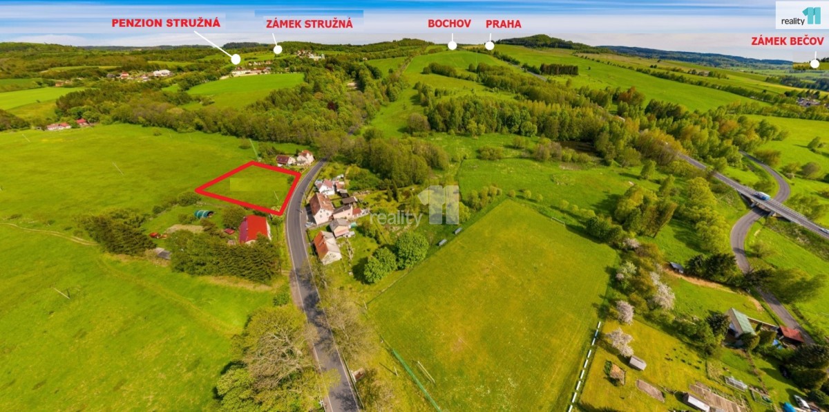Pozemek je rovinný, na konci obce v nadmořské výš...ce 645 m v klidné a nádherné krajině Doupovských hor, v sousedství zámku Stružná.