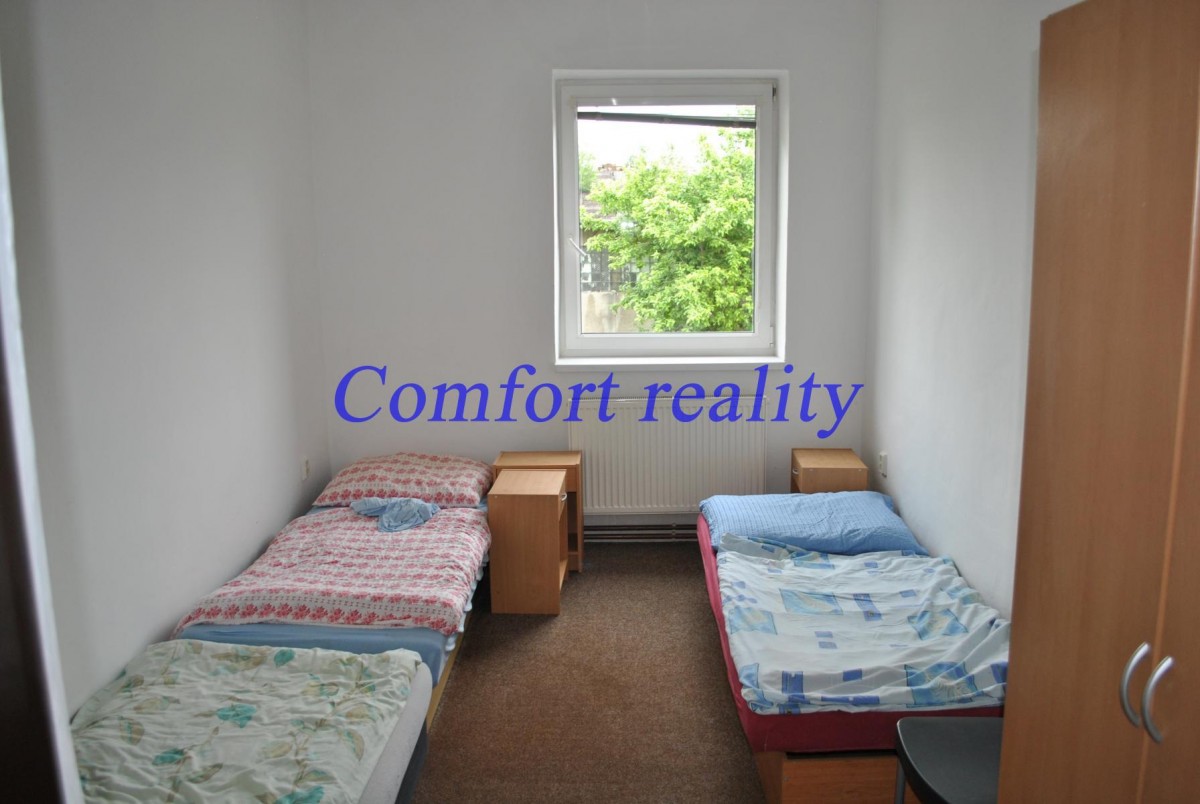 Nabízíme prodej ubytovacího zařízení v areálu bývalého statku. Objekt je vhodný jako sídlo firmy se skladem nebo výrobou anebo jako ubytovna. V 1. NP (první nadzemní patro) se nachází prádelna, sklad, šatna, jídelna, ku...chyně a skladové prostory nebo výrobní. K přízemním prostorům je již vypracován projekt na vybudování dvou bytů 2+kk o výměře 41 m2 a 39 m2. Ve 2. NP (druhé nadzemní patro) se nachází centrální koupelna s sociální zařízení WC (další sociální zařízení WC je samostatné), kuchyně s jídelnou a 7 pokoji. Objekt je vytápěn plynovým kotlem s ústředním vytápěním. Odpadní vody svedeny do jímky. Jelikož od majitele domu nemáme k dispozici energetický štítek náročnosti budovy, zákonná povinnosti nám nařizuje uvádět v inzerci energetickou náročnost budovy třídy G - mimořádně nehospodárná. Více informací u makléře.