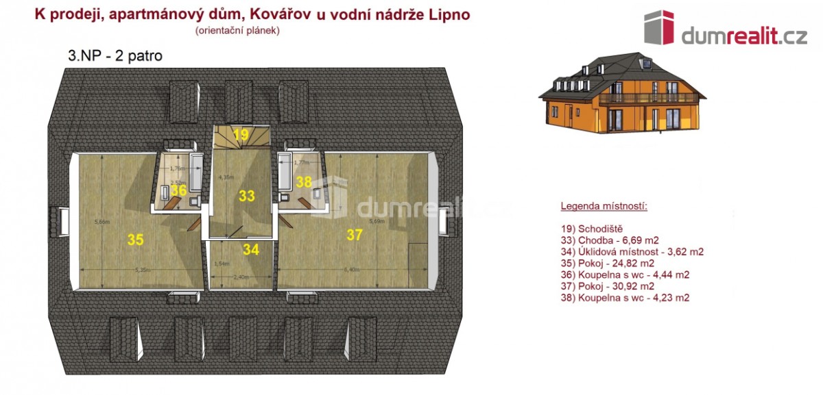 Cena je včetně provize RK a právního servisu. Více info Vám poskytne makléř Tomáš Pelda. . Dumrealit. cz Vám nabízí prodej objektu s kuchyní, restaurací a 8 pokoji (4 apartmány + 2 pokoje s koupelnami) pro rodinnou rekreac...i v obci Kovářov - Frymburk u vodní nádrže Lipno. Prodávaný objekt s pozemky naleznete na LV č. 2320 v kú Kovářov, obec Frymburk. Podrobné rozkreslení dispozice objektu naleznete na orientačním plánku mezi fotografiemi. Dům je zděný bez zateplení. Stropy jsou kombinované ŽB a dřevěné. Rozvody vody a kanalizace jsou plastové. Vytápění a ohřev teplé vody je řešen plynovým kotlem, nádrž na plyn je zakopaná v zemi za domem na pozemku. Elektřina je částečně v mědi. Objekt je připojen na veřejný vodovod a obecní kanalizaci. Okna jsou téměř všechna plastová s dvojskly. K dispozici máme pasportizaci stavby, projektovou dokumentaci na přestavbu domu, kompletní zákres inženýrských sítí, územně plánovací informaci s možnostmi využití zástavby na pozemku. Možnost koupě objektu s pozemky jako firmu za zvýhodněnou cenu. Doporučuji prohlídku, objekt je vhodný k podnikatelskému záměru. Zajistíme Vám financování a veškerý právní servis, popř. architekta a doporučíme stavební firmu. Více info Vám poskytne realitní makléř Tomáš Pelda z realitní kanceláře A TEMPO fungující pod ochrannou známkou dumrealit. cz. . Ev. číslo: 652662. Energetický štítek: G