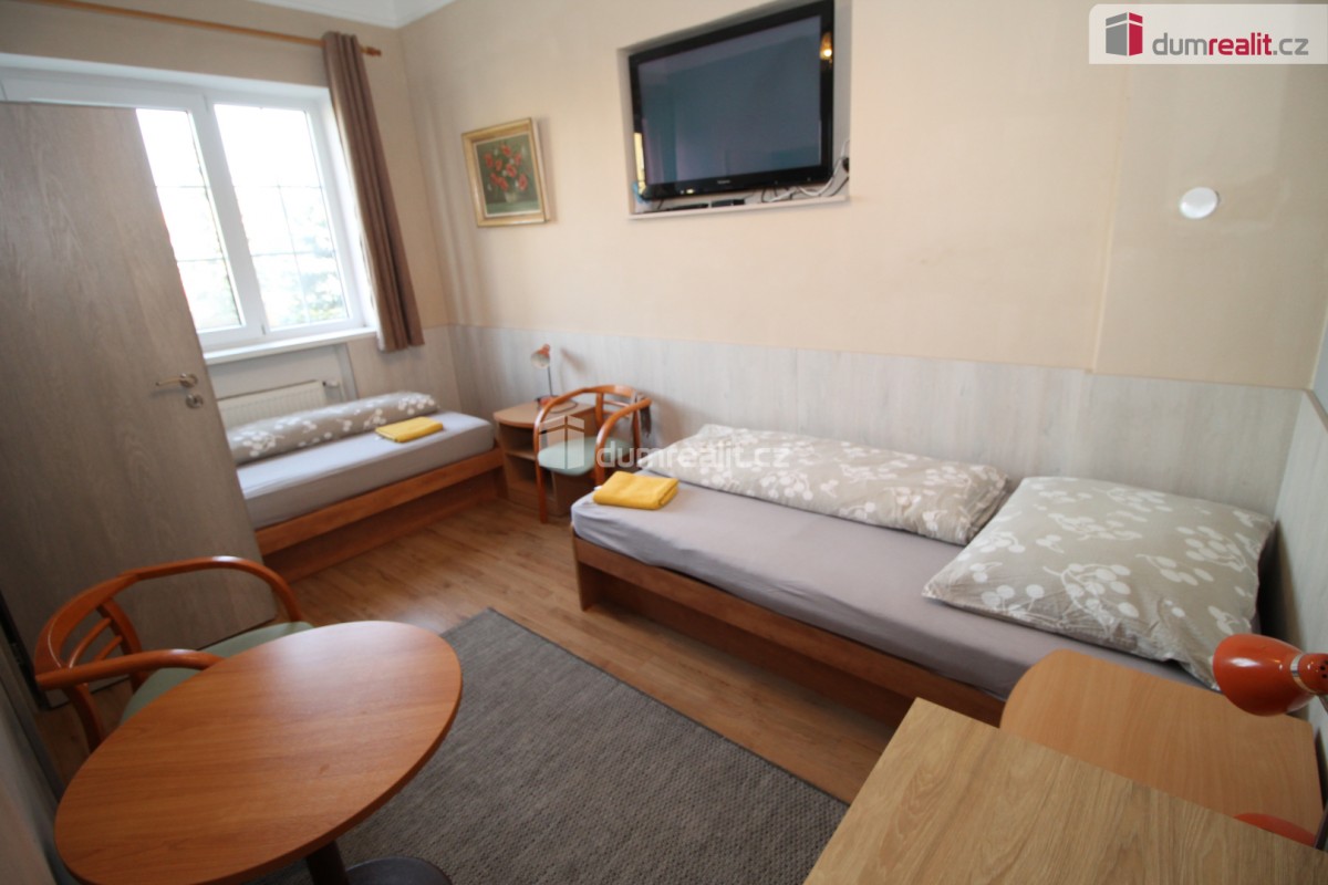 Dumrealit. cz Vám nabízí koupi ubytovacího zařízení/hotelu s restaurací a terasou v Chodové Plané u Mariánských Lázní. Objekt je po kompletní rekonstrukci, která proběhla průběžně v minulých letech a to včetně elektroinstal...ace, vodoinstalace, odpadů, podlah, topného systému, fasády, plastových oken, zateplení a střechy včetně nových trámů. Dům je rovněž kompletně podřezaný s novou hydroizolací. Celková plocha 460 m² nabízí v přízemí restauraci s barem, kuchyní, terasou s kapacitou pro až 70 osob. V přízemí jsou toalety, technická místnost, toalety pro personál, technické zázemí, sklad. Do objektu vedou dva vchody, z přední části je přístupná restaurace, zadním vchodem se dostáváme do ubytovací části, kde v přízemí jsou dva pokoje každý s vlastní koupelnou. V prvním patře jsou 4 pokoje z nichž dva tvoří větší apartmán s koupelnou se sprchou a toaletou. Další dva pokoje mají každý svou koupelnu. Pokoje jsou kompletně zařízené včetně TV, lednice, postelí, skříní. Proti pokojům v prvním patře je bytová jednotka vhodná na předělání na další ubytovací kapacitu, případně ideální jako domov majitele. Byt. jednotka je dispozičně řešena jako 3+1, je zde velká krásná koupelna a terasa (cca 12 m²). V patře je dále sklad a dále úložné prostory na půdě, kde by bylo možné na základě projektu dostavět další patro a tím zvýšit kapacitu a výnosnost hotelu. Dům vytápí plynový kotel, v přízemí je navíc krb s krbovou vložkou, který je vždy dobrou doplňkovou alternativou. Ohřev teplé vody zajišťuje bojler. K dispozici je též studna, ze které je možné čerpat užitkovou vodu. Restaurace s hotelem jsou zavedené, majitel přenechá podnik kompletně vybavený. Parkování je možné na přilehlém parkovišti u objektu. Do deseti minut jízdy jsou Mariánské Lázně, které se staly součástí kulturního dědictví UNESCO, kde je veškeré občanské vybavení, nákupní centrum, banky a úřady. Chodová planá je turisticky oblíbená destinace díky zámeckému parku, vede tudy mezinárodní cyklotrasa Goldsteig, v plánu je otevření a oprava místního zámku. Opravené náměstí láká projíždějící k zastavení na oběd. Restaurace s hotelem jsou na perfektním viditelném místě, které nemůžete minout při cestě z Prahy/Plzně do Mariánských Lázní či do Chebu. Cena zahrnuje provizi a právní servis. Ev. číslo: 650432. Energetický štítek: G (50 kWh/m2/rok).