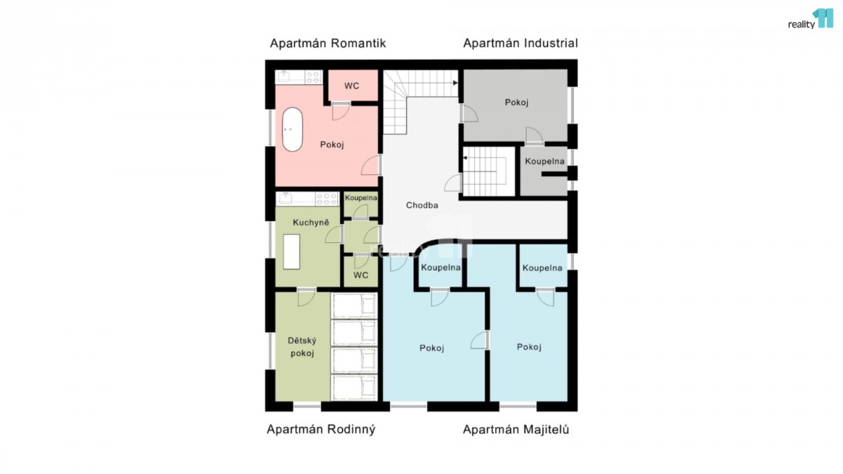 Objekt aktuálně nabízí tři stylově odlišné ubytovací jednotky, byt majitelů, velkorysý podkrovní byt a přízemní prostor s dalším potenciálem.