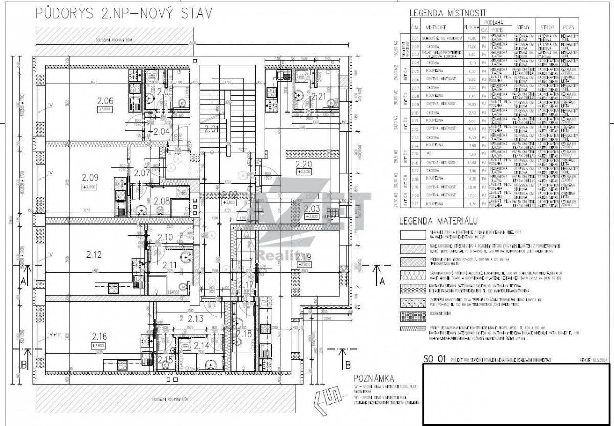 2. NP (druhé nadzemní patro) 277 m and sup2; 103 m and sup2; 6 jednotek
