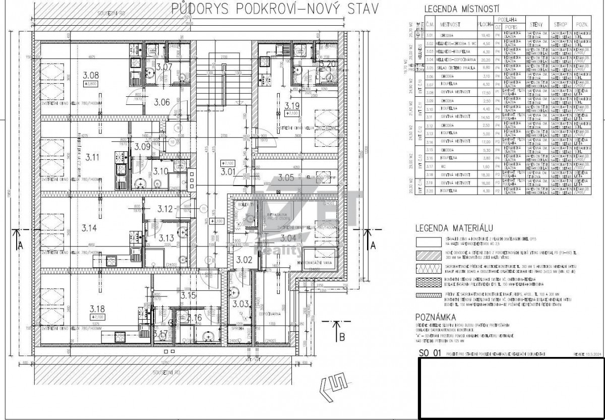 2. NP (druhé nadzemní patro) 277 m and sup2; 103 m and sup2; 6 jednotek