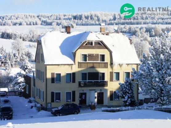 Rodinný penzion o velikosti 10 pokojů a 38 lůžek, vlastní byt o velikosti 3+1. K penzionu patří pozemek kolem domu, kde je plechová garáž, zahradní posezení včetně pergoly a grilu,... dětské hřiště, udírna. V domě je dále restaurace ( bar), finská sauna, společenská místnost pro cca 45 osob, dětský koutek s místností s kuchyňkou. Dům má nová plastová okna a dveře, elektronické zámky pro hosty. Osobní prohlídka možná kdykoli.