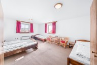 4 dvoulůžkové pokoje (1 s vlastní koupelnou a sociální zařízení WC, ostatní sdílejí koupelnu s sociální zařízení WC) a 2 kuchyňky na patře.