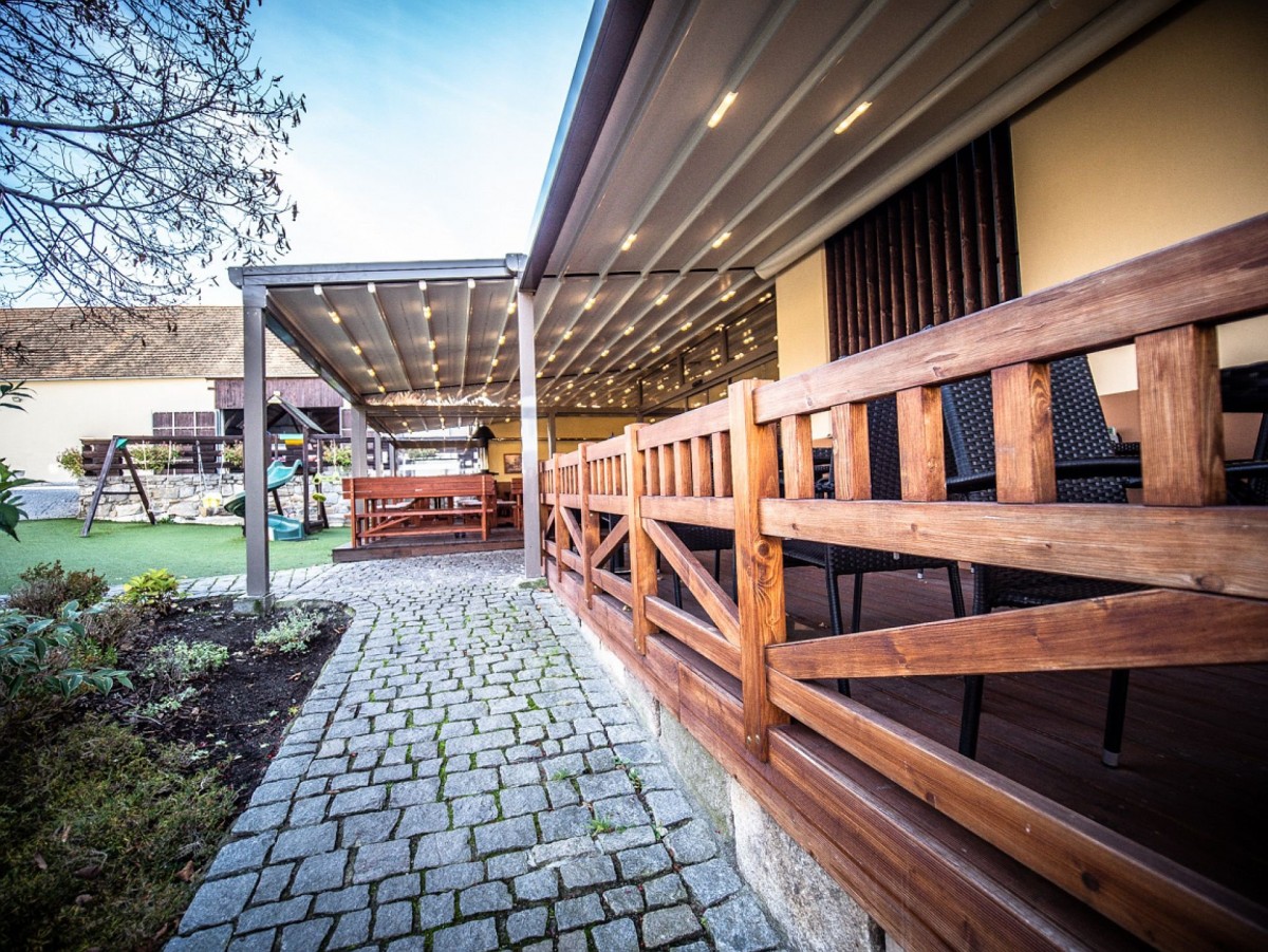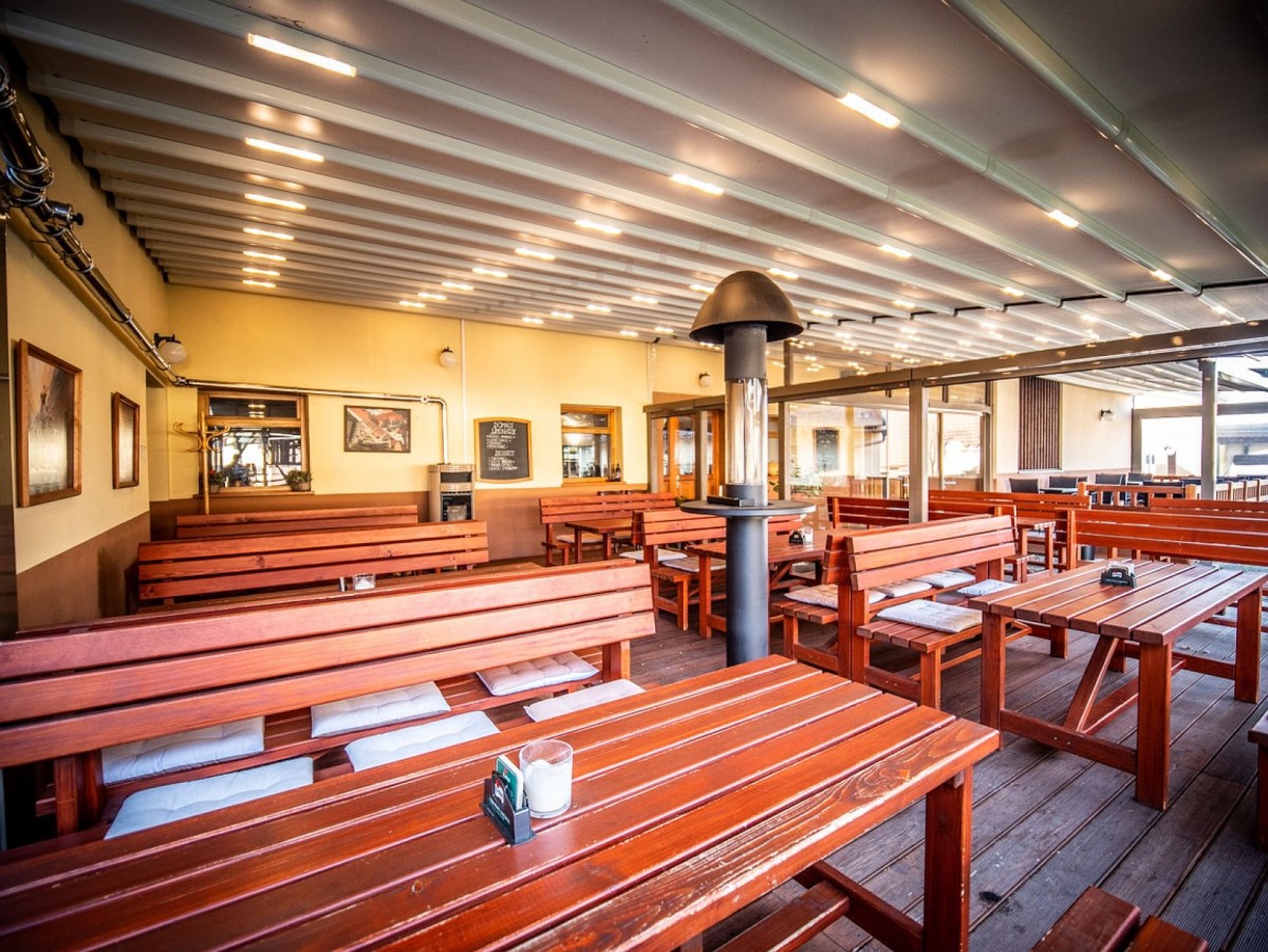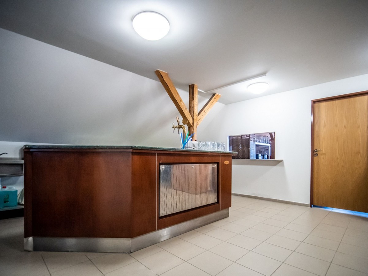 Celý areál je udržovaný, užívaný a oblíbený u návštěvníků. První budova byla v roce 2012 kompletně zrekonstruována a zrekolaudována na restauraci. V přízemí se nachází restaurační provoz s barem a kapacitou cca 85 míst pro hosty, dostatečně prostorná kuchyně, sklady potravin, zázemí pro personál a sociální zařízení pro hosty. V prvním patře je pak veliký salonek s kapacitou až 120 hostů, samostatný výčep pro první patro, přípravna jídel, sklad jídel a také sociální zařízení pro hosty. Na budovu navazuje terasa s kapacitou pro 60 osob, nad kterou je instalována obří elektrická markýza, díky které se hosté schovají nejen před sluníčkem, ale také před deštěm. Předmětem prodeje je i částečné vybavení provozu. Přesná specifikace bude předána zájemcům. Užitná plocha této budovy je cca 494 m2.