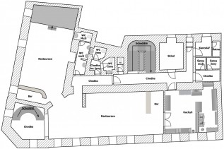 Nebytové prostory jsou umístěny v rohovém secesním domě a mají sa...mostatný vstup přímo na rohu domu. Za dveřmi se nachází vstupní místnost a schody do polosuterénu. Nemovitost je kolaudovaná jako restaurace.