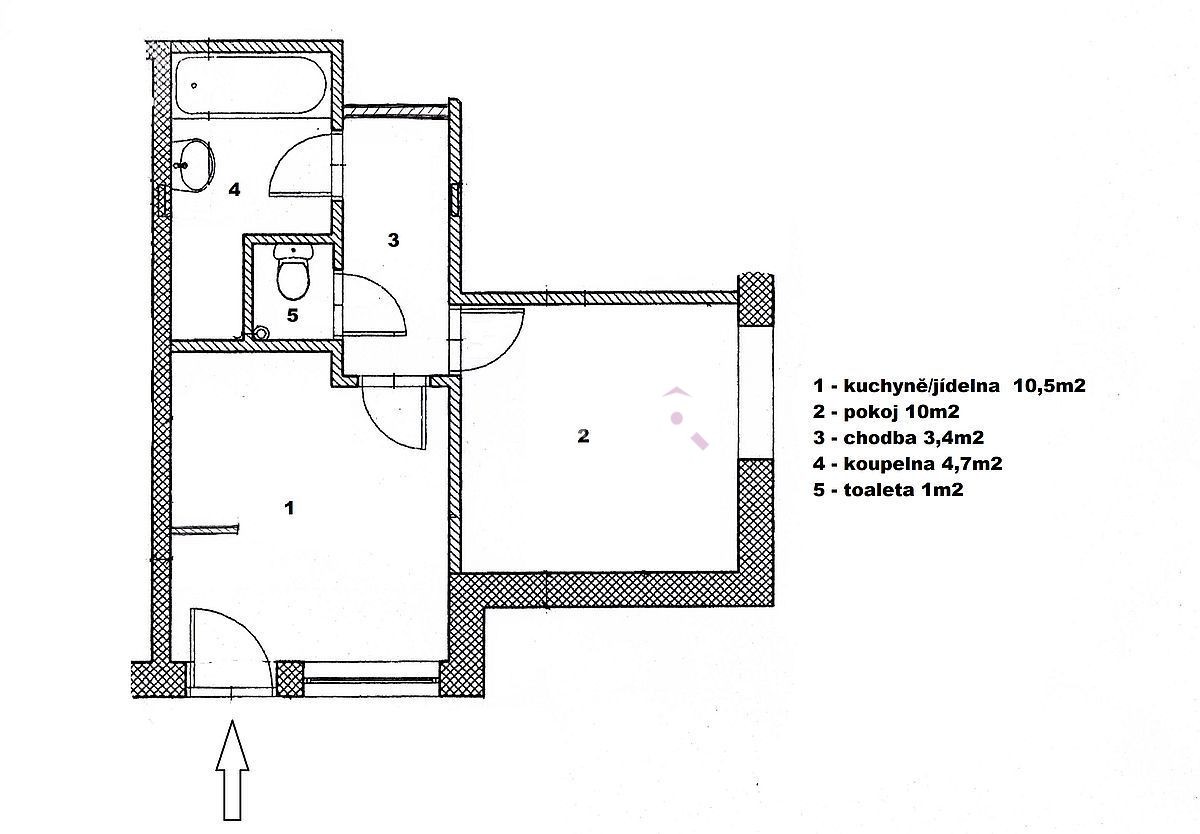 1+1, 30 m2, cihlová, OV, 1. podlaží