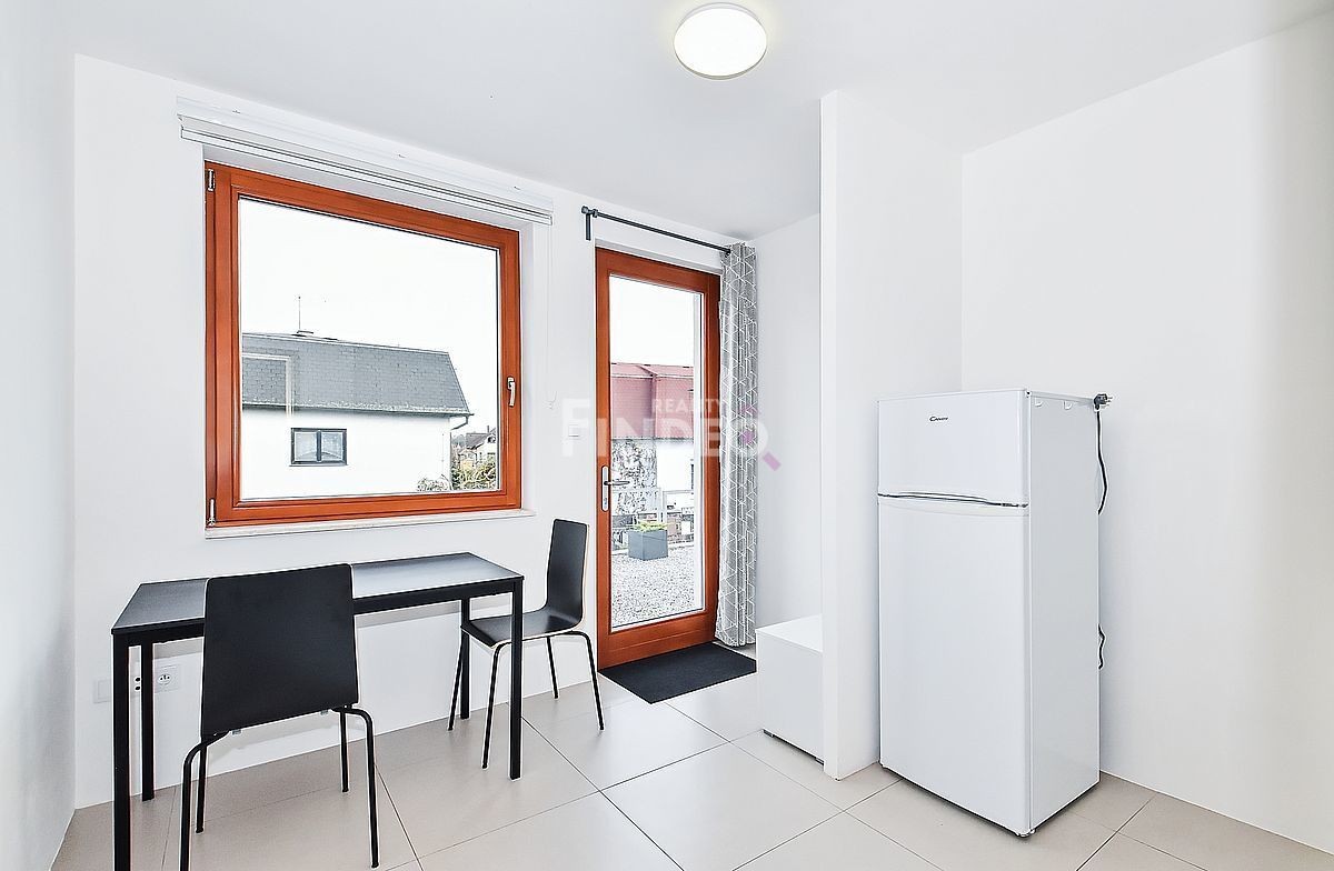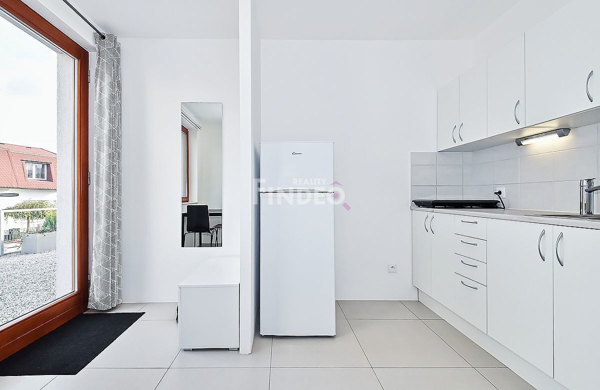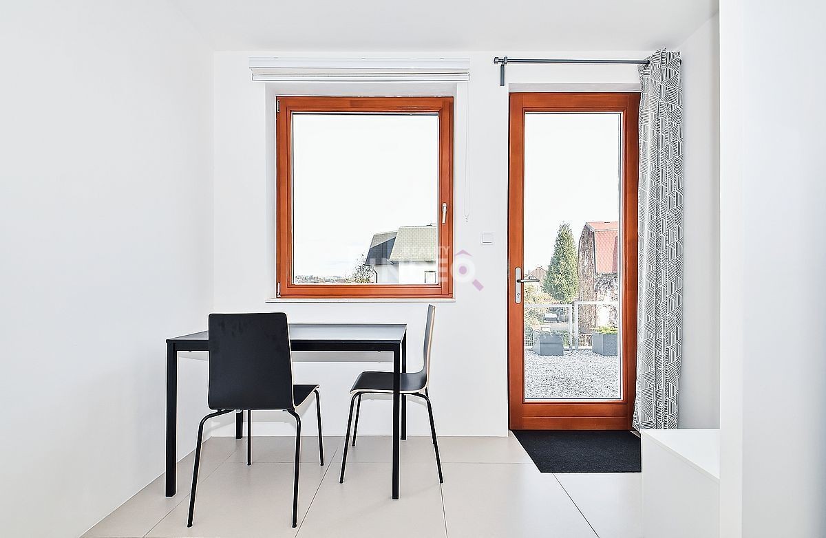 Dlouhodobý pronájem kompletně zařízeného bytu o dispozici 1+1 a výměře cca 30 m2, který je situován v přízemí novostavby rodinného domu. Ten se nachází v klidné vilkové čtv...rti, ul. U Sila v Praze 5 - Řeporyjích. Byt má samostatný vchod, ve vstupní části je umístěn botník. Kuchyňská linka je vybavena lednicí s mrazákem a indukční varnou deskou, navazuje na jídelní část s kuchyňským stolem a 2 židlemi. Pokoj s rohovou skříní je zařízen také lůžkem, psacím stolem, nočním stolkem a poličkou. V prostorné koupelně s vanou i sprchovým koutem je umístěna také pračka. Předností je samostatné sociální zařízení WC . Dlažba a podlahové vytápění dodají na komfortu, okna jsou cloněna praktickými roletkami. Díky orientaci na JV je byt velice světlý a působí příjemným dojmem, neboť celá jeho kompozice byla tvořena s citem pro detail. Nájemce jistě ocení i možnost využívat terasu před bytem pro posezení s hezkým výhledem a parkování vozidla přímo před domem. Byt je nově bíle vymalován, uklizen a připraven k okamžitému nastěhování. Samozřejmostí je výborná dopravní dostupnost – v docházkové vzdálenosti 5 min. se nachází zastávka autobusu nebo vlaku. Nabídka je vhodná pro 1 osobu, chov volně pobíhajících domácích mazlíčků není majiteli dovolen.