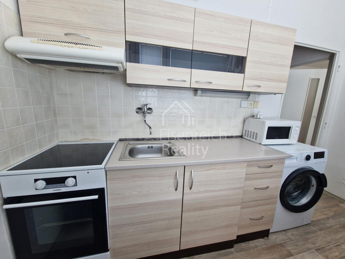 Nabízíme k pronájmu byt o dispozici 1+1 a celkové ploše 34m2. Byt je nabízen do pronájmu částečně vybaven - lednice s mrazákem, pračka, jídelní stůl, křeslo, židle, k...omoda, postel, šatní skříň, konferenční stolek. Byt se nachází ve 2. patře včetně výtahu. V místě bydlení je veškerá občanská vybavenost. Volné od 1. 4. 2026.