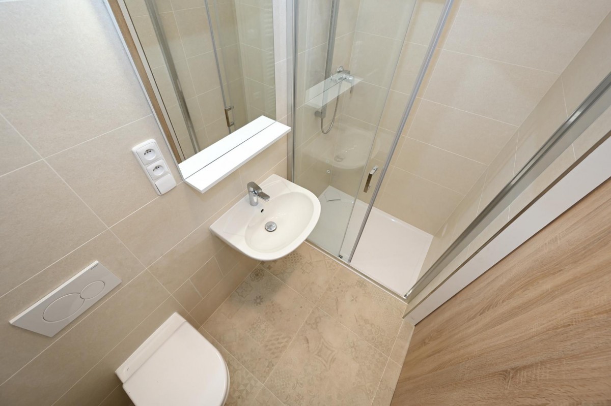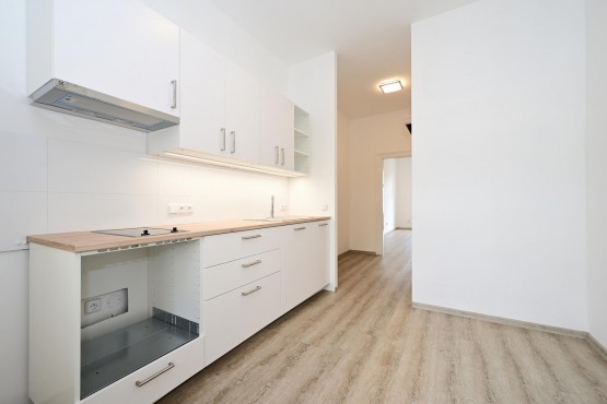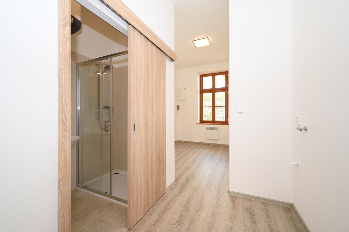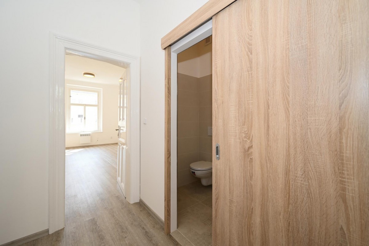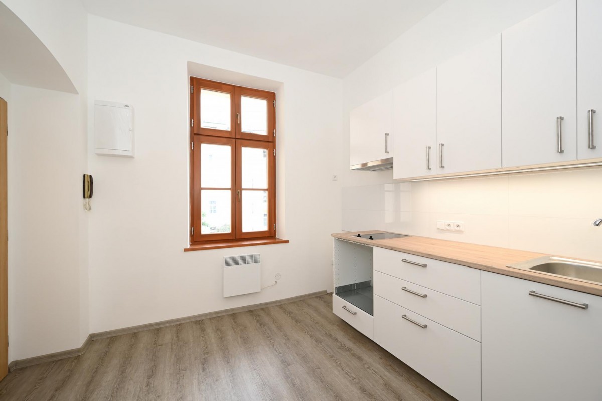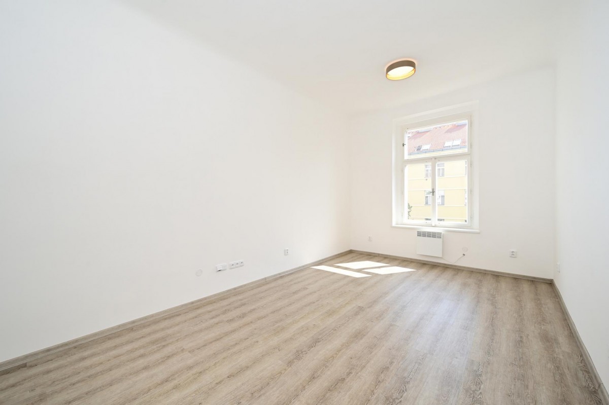 Pronájem zcela nové rekonstrukce nezařízeného bytu 1+1 o velikosti 35 m2 na třetím patře bez výtahu.