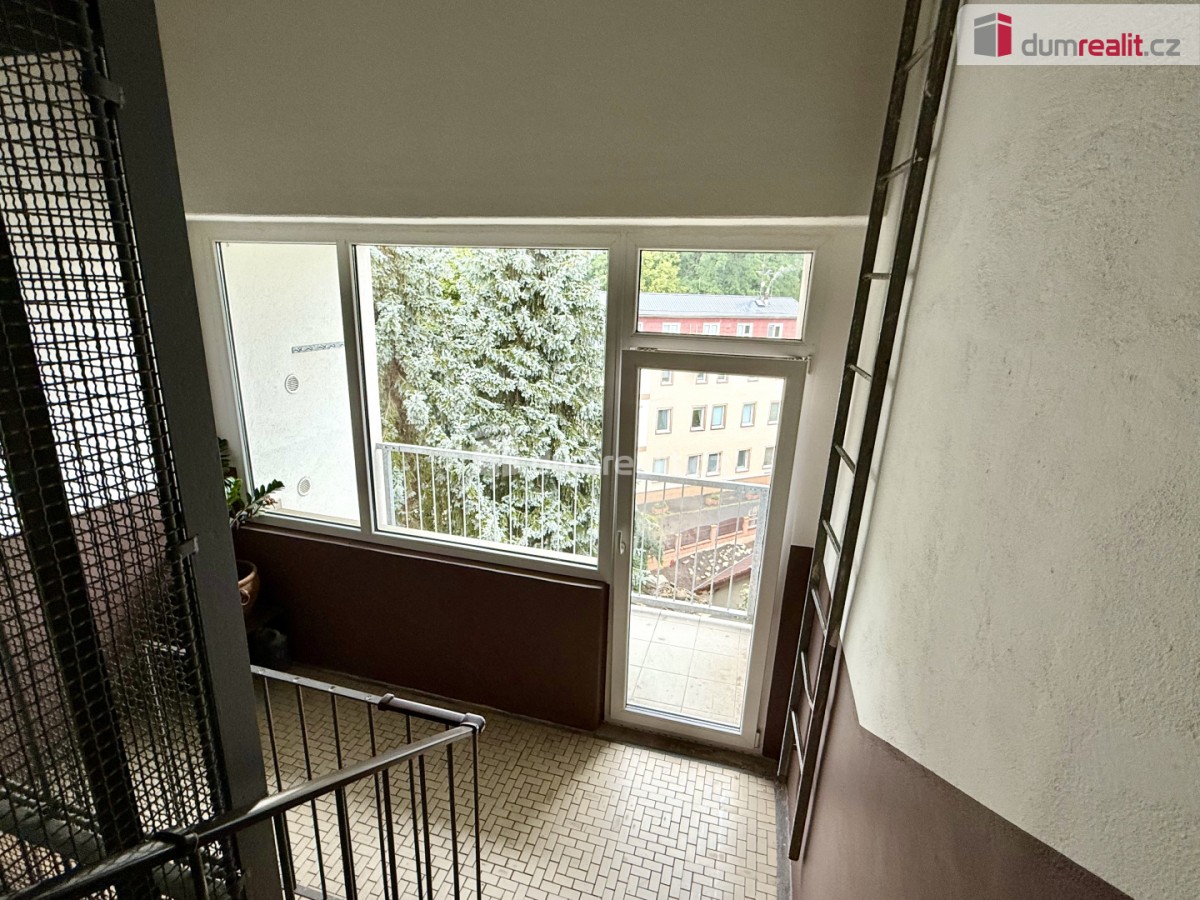Uzamykatelný balkón v mezipatře. K dispozici sklepní kóje.