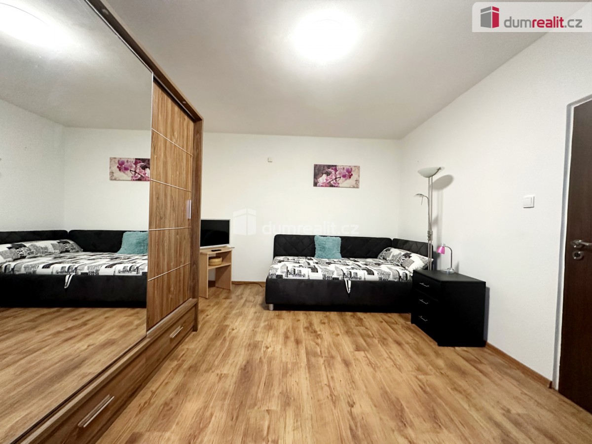 Byt je ideální pro jednotlivce nebo pár a je vybaven vším potřebným pro pohodlný život . Byt se skládá z prostorné kuchyně vybavenou kuchyňskou linkou se sporákem, včetně kuchyňského stolu se židlemi. Dále se v kuchyni nachází lednice a mikrovlnná trouba. Ve vedlejší místnosti je prostorný pokoj vybaven Tv stolkem včetně televize, velkou skříní a nočním stolkem, nechybí zde ani vysavač. Koupelna disponuje sprchovým koutem a pračkou. V bytě naleznete další drobnosti pro běžný chod domácnosti.