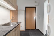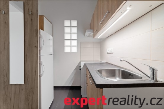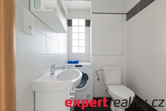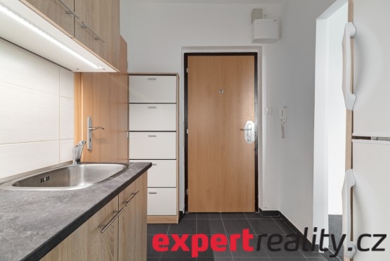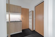 Díky umístění kuchyňské linky v chodbě získáváte plnohodnotný obývací pokoj a ložnici. Koupelna má sprchový kout a sociální zařízení WC. Kuchyň je vybavená vším potřebným – nádobí, elektrický sporák s troubou i lednice s mrazákem. V ložnici je prostorná vestavěná skříň, kam se vejdou všechny vaše věci. V obýváku čeká televize se základním balíčkem programů. Pračka v koupelně a balkón v mezipatře vyřeší vaše praní.