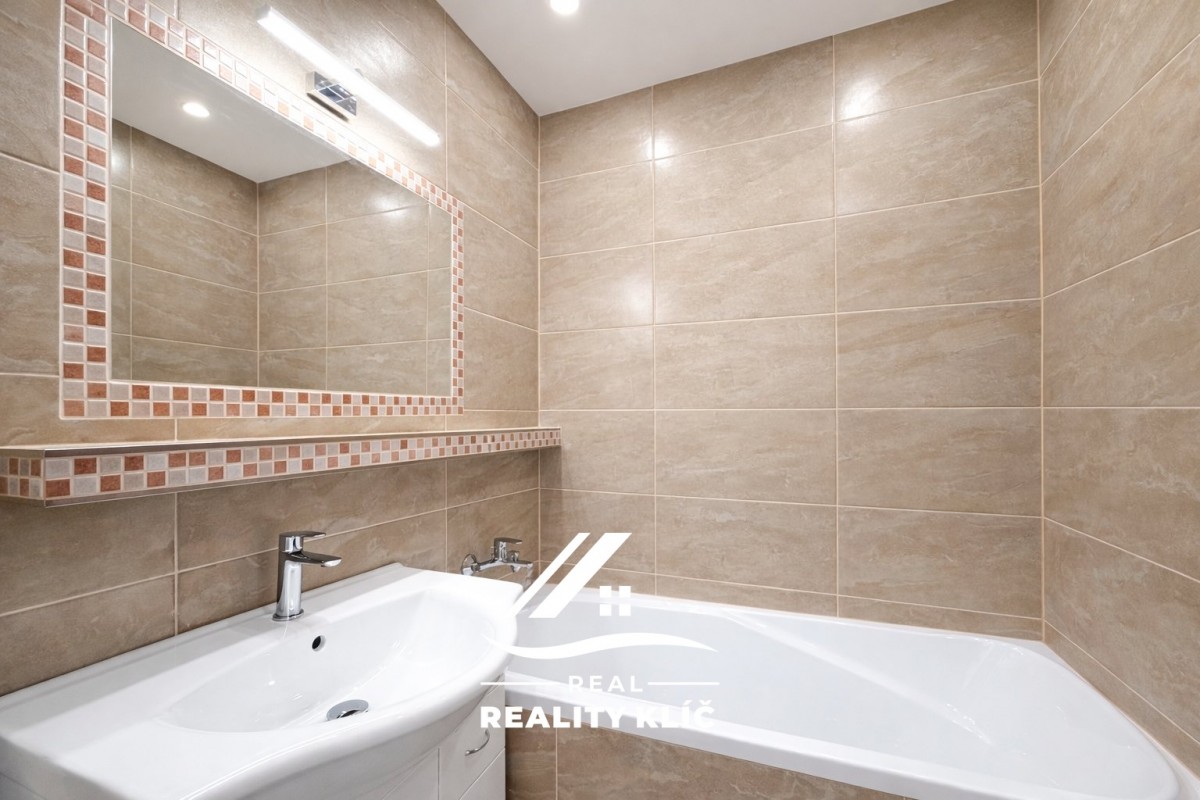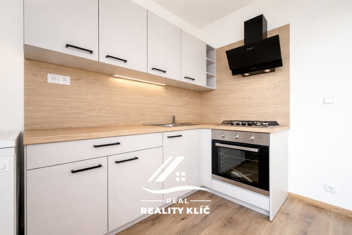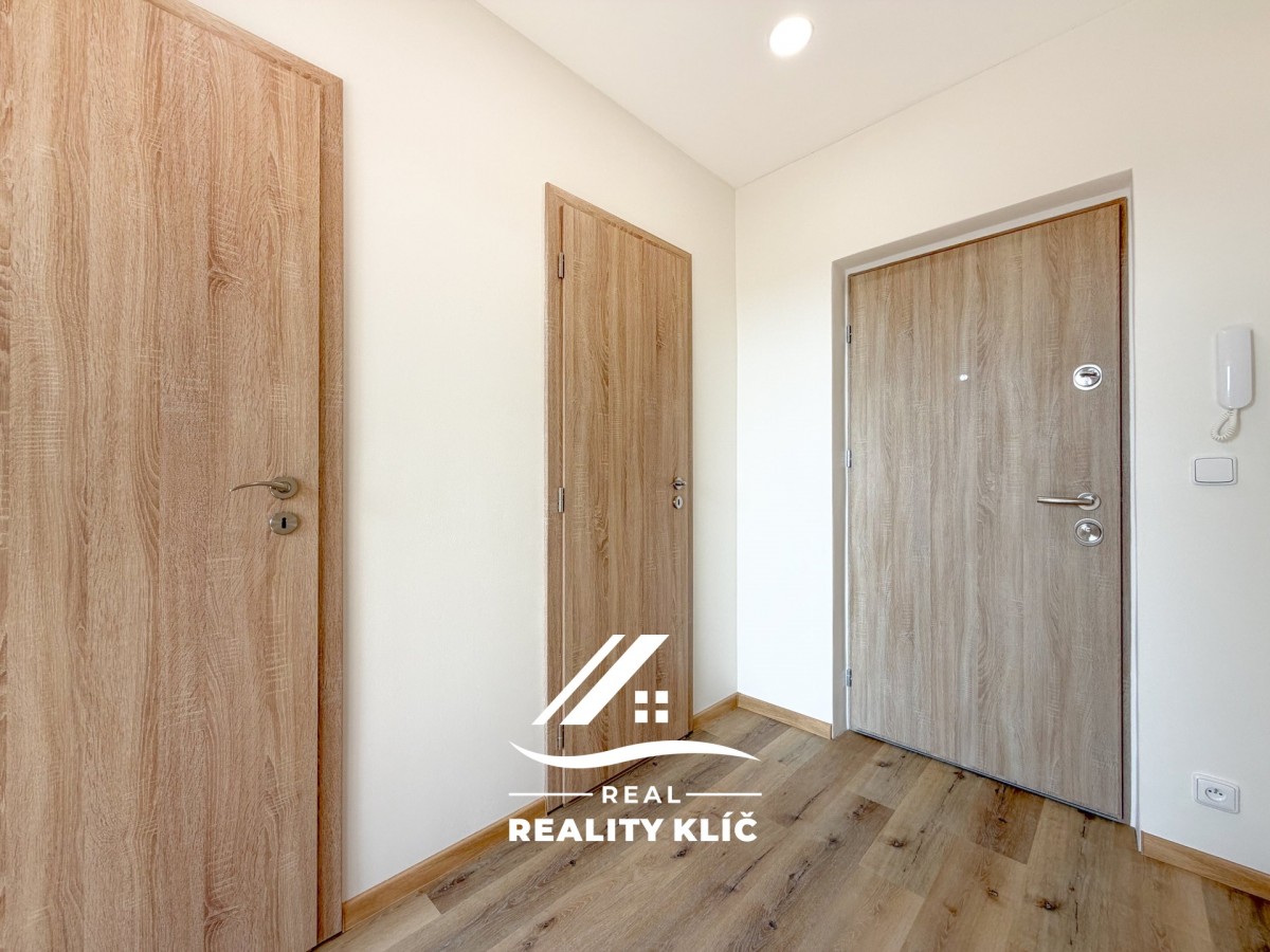Byt tvoří samostatný pok...oj, oddělená kuchyně s novou kuchyňskou linkou včetně spotřebičů (varná deska, trouba, digestoř, dřez, lednice), koupelna s vanou a umyvadlem a samostatné sociální zařízení WC, které zvyšuje komfort bydlení. Interiér je řešen v moderním a světlém stylu, působí čistě a vzdušně. K bytu náleží také sklepní kóje, která poskytuje praktický úložný prostor. Byt bude před předáním doplněn o stropní osvětlení a žaluzie.