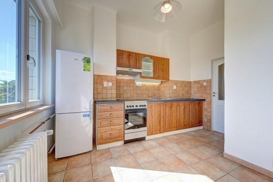 V kuchyni je kuchyňská linka zařízená spotřebiči jako je lednice s mrazničkou a elektrický sporák se sklokeramickou varnou deskou. V koupelně je vana, pračka a toaleta. Na chodbě jsou vestavěné skříně, dostatek úložného prostoru.